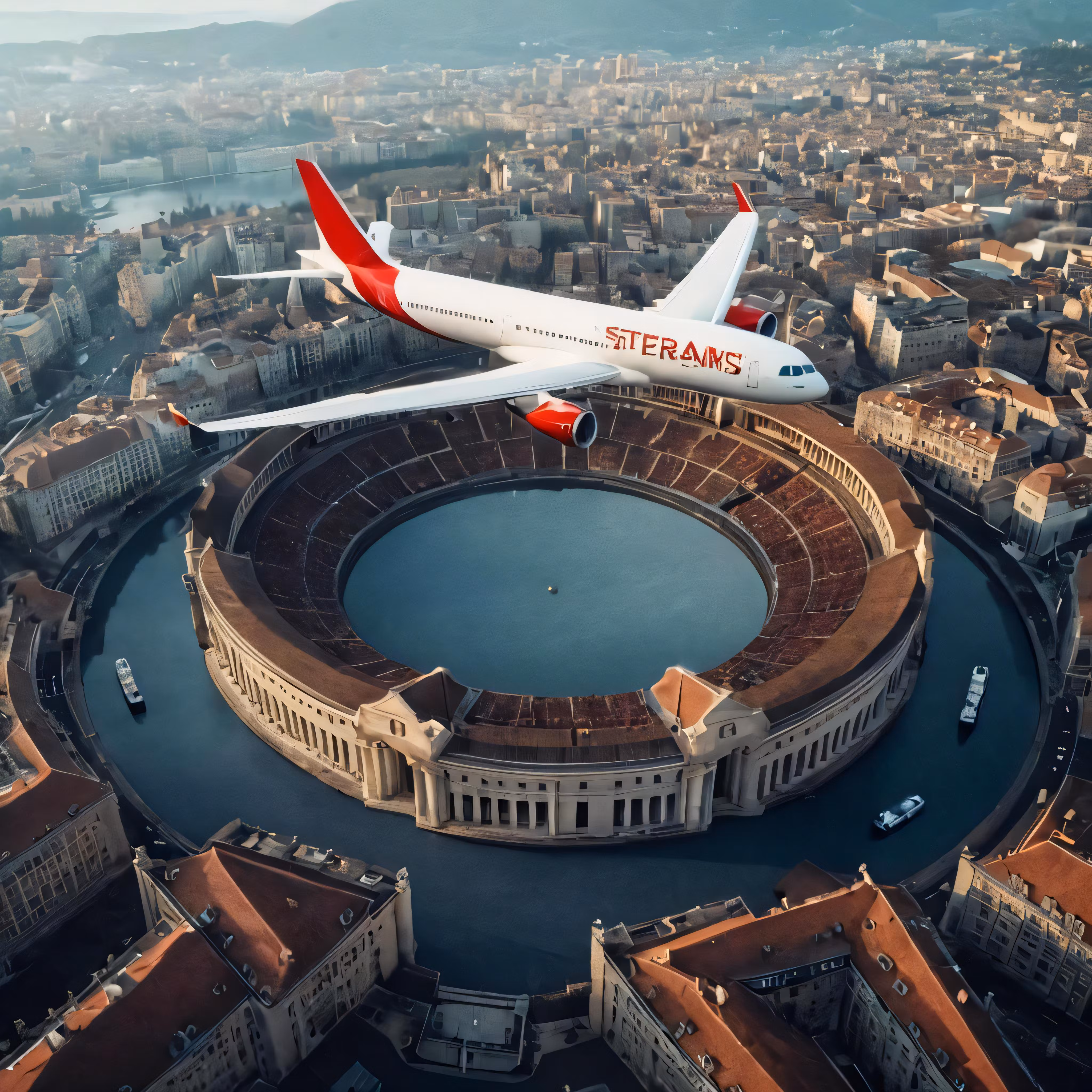 High resolution picture, free to use, a huge white plane is flying low to the ground
