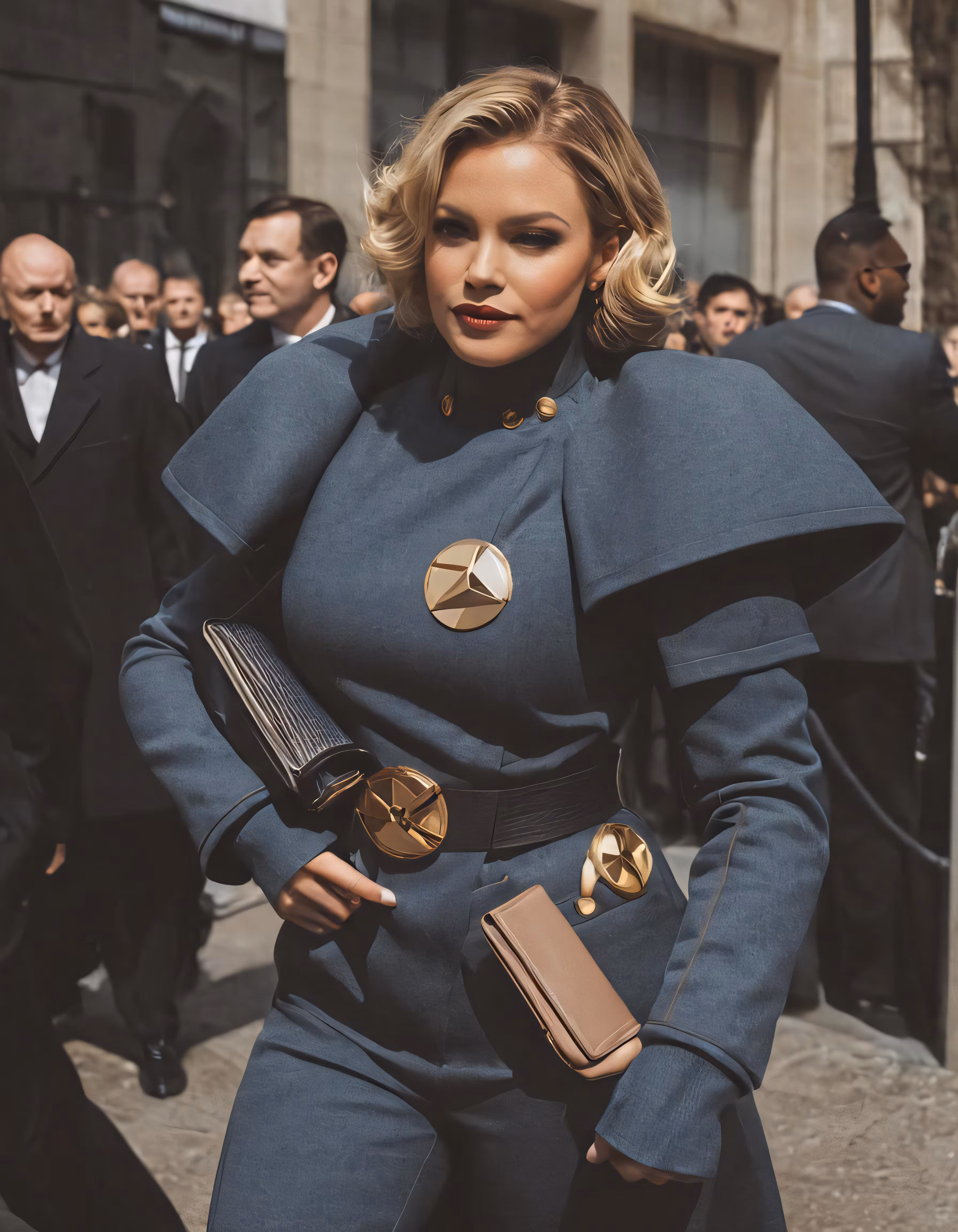 High resolution picture, free to use, a lady dressed in a blue and gold outfit