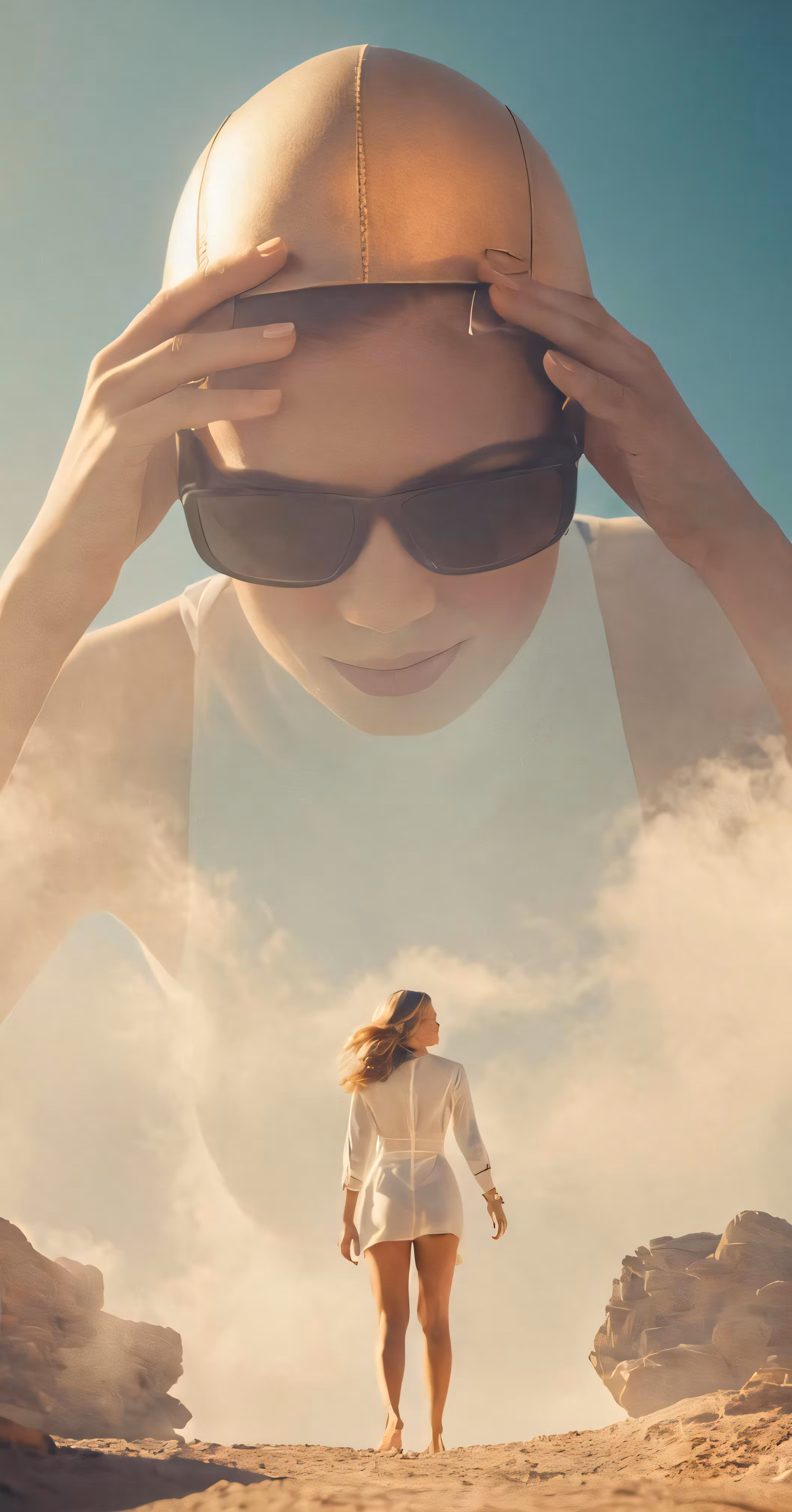 High resolution picture, free to use, a lady with a helmet is standing at the beach
