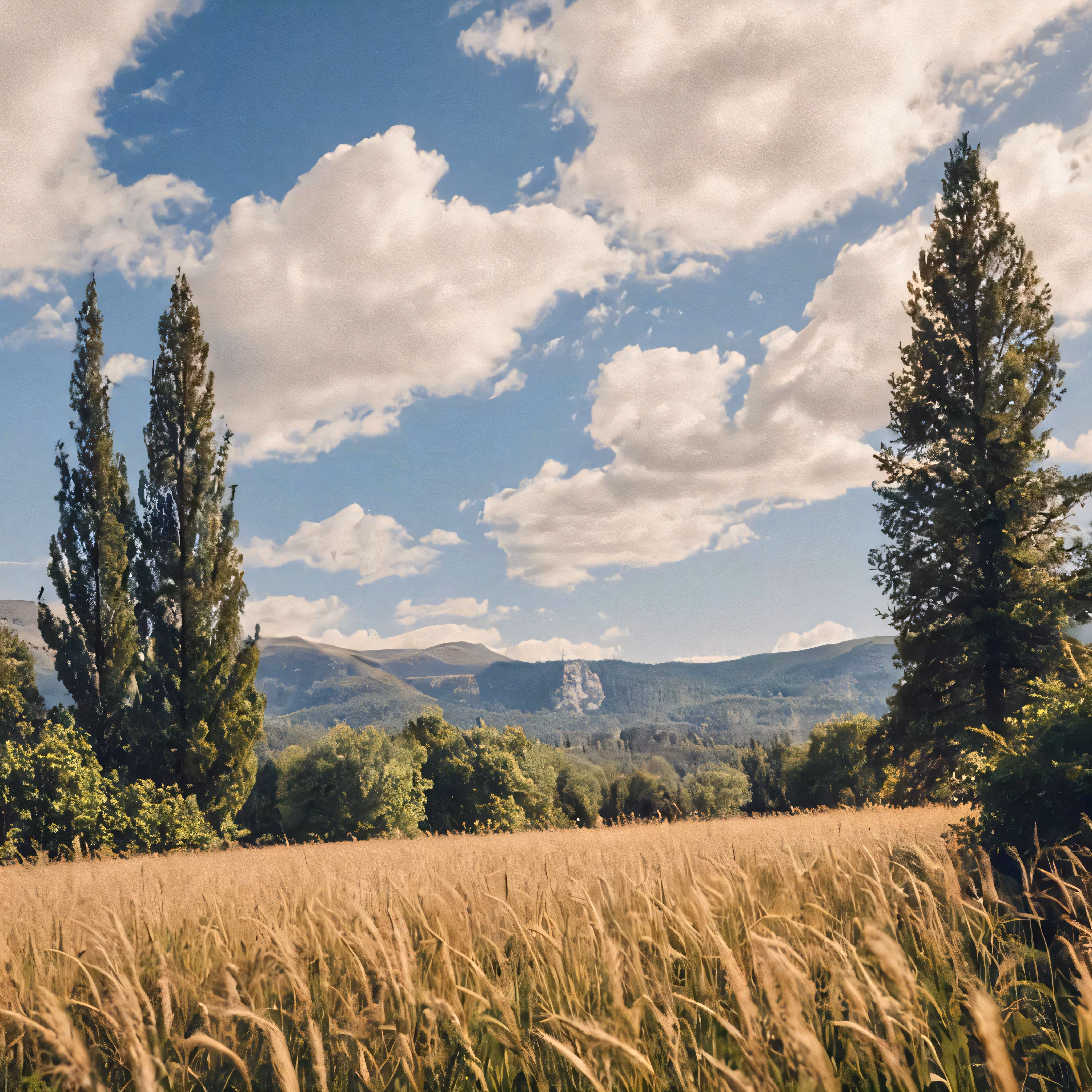 High resolution picture, free to use, a landscape of trees and clouds is shown