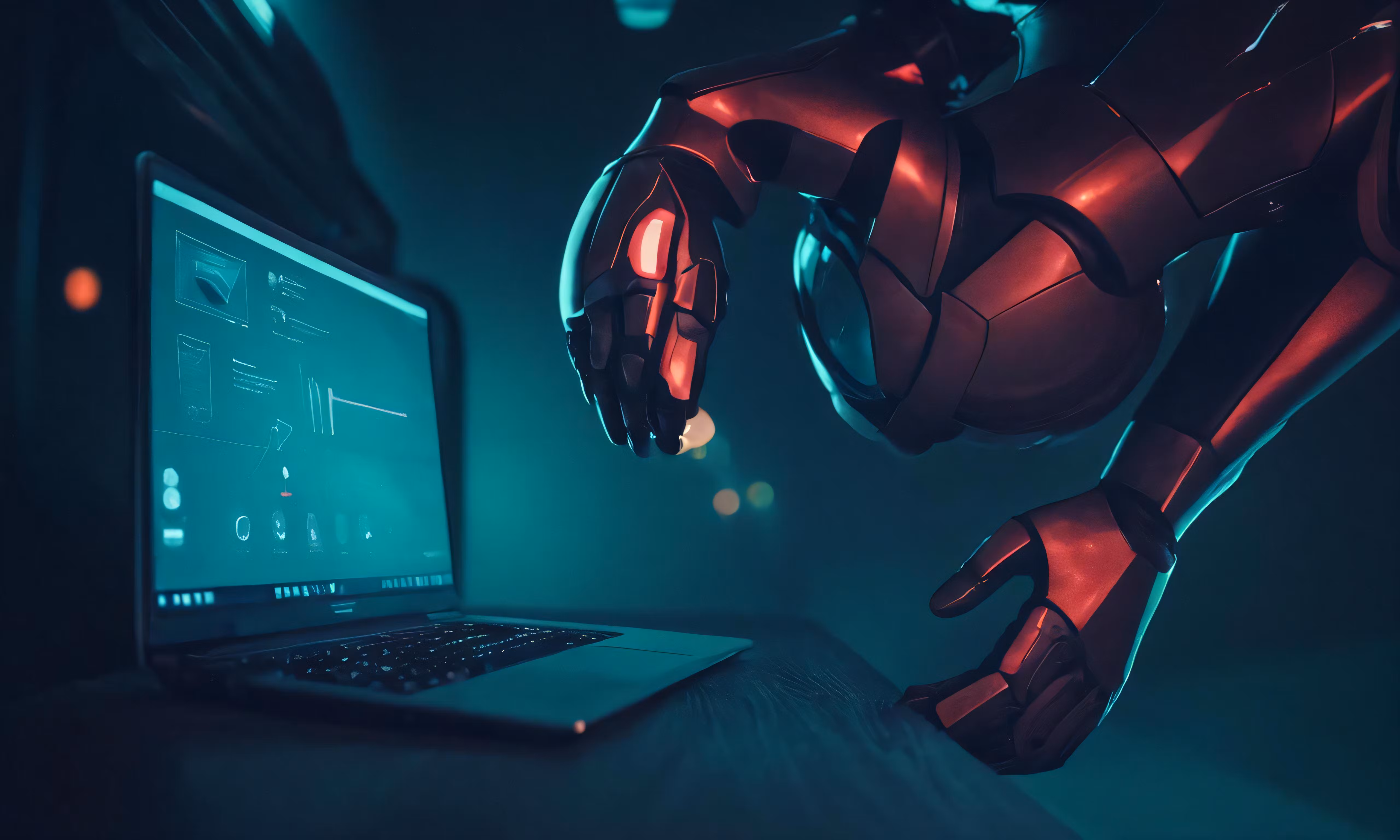 High resolution picture, free to use, a laptop sitting on a bed with glowing blue light