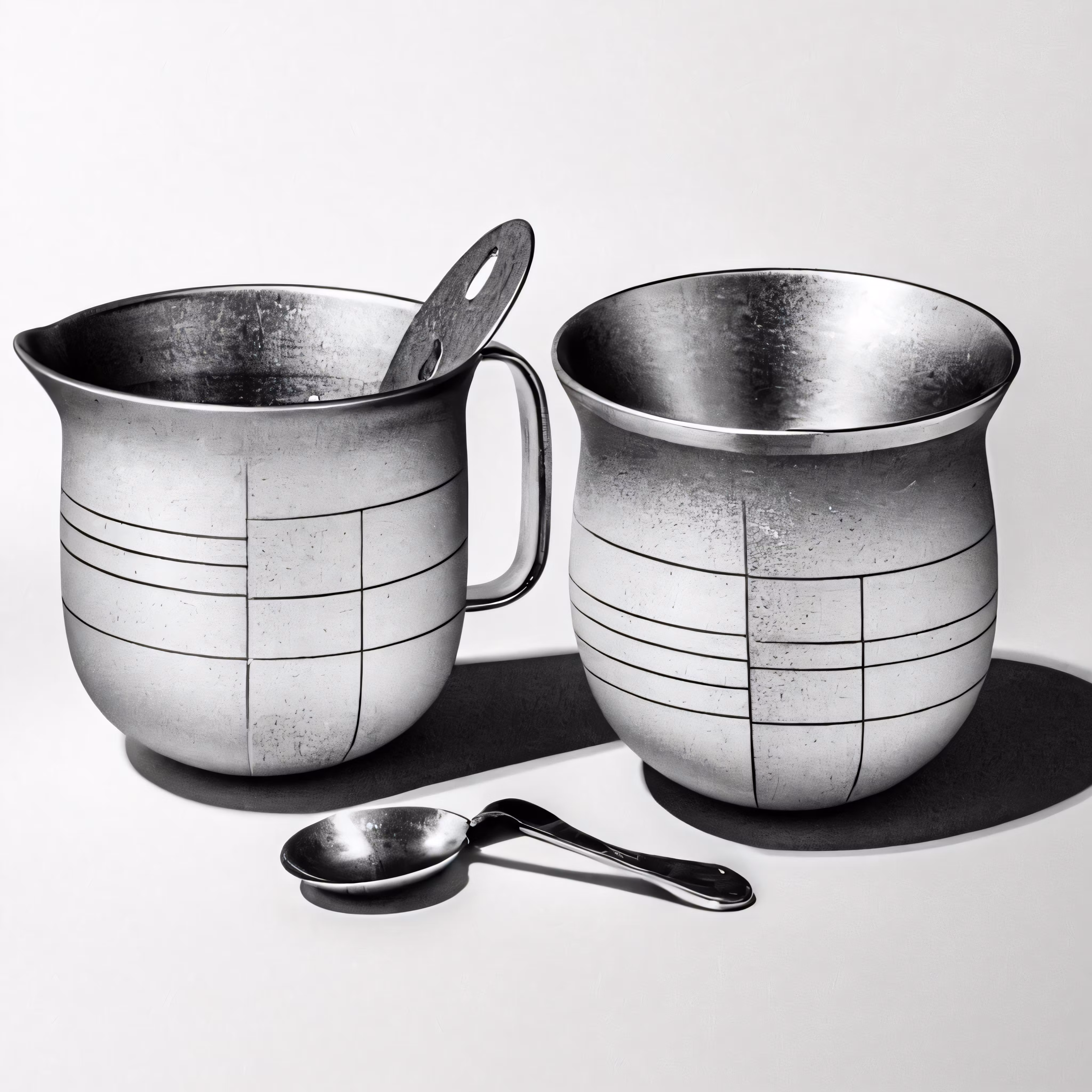 High resolution picture, free to use, a large and small metal cup with a spoon