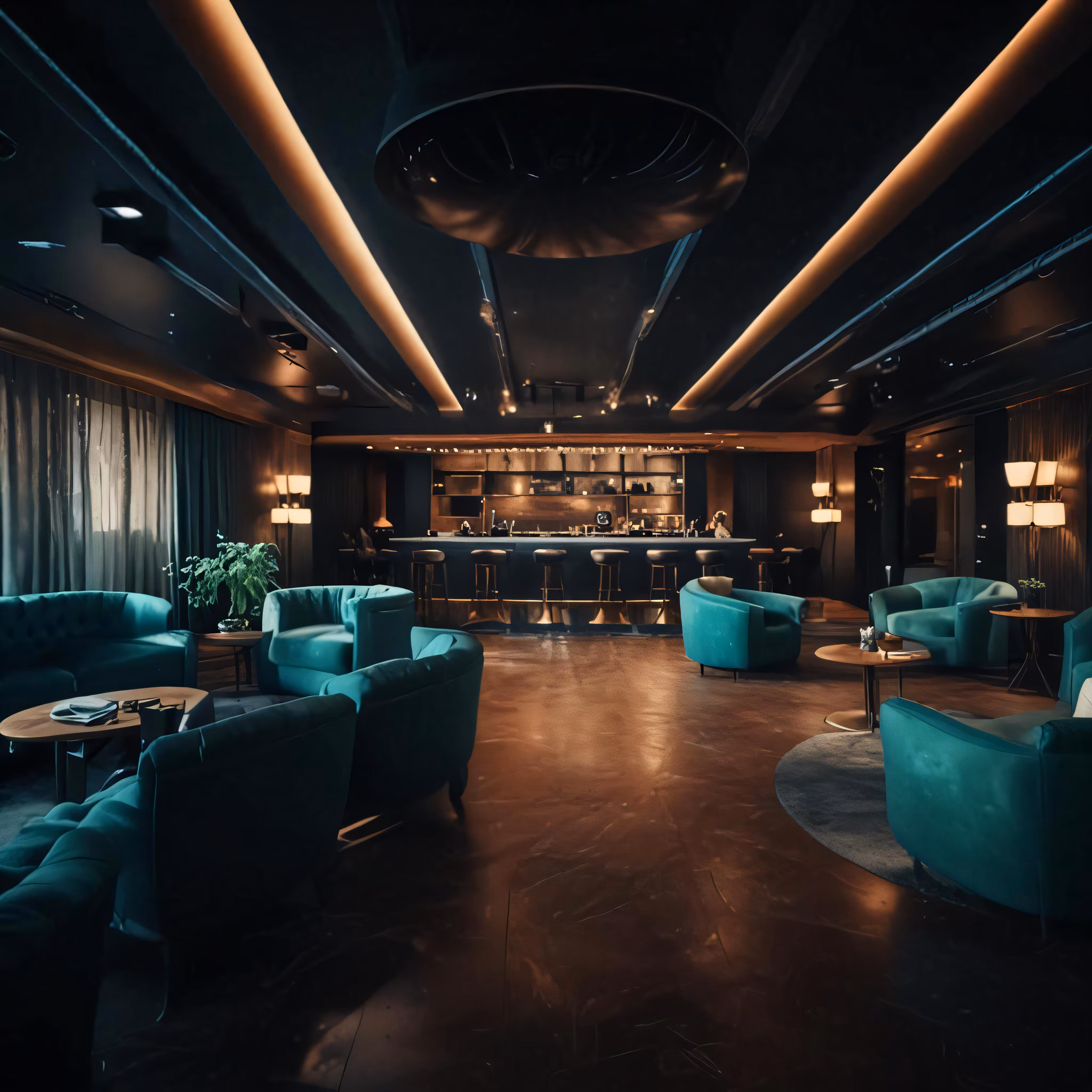 High resolution picture, free to use, a large blue lounge area with multiple couches and chairs