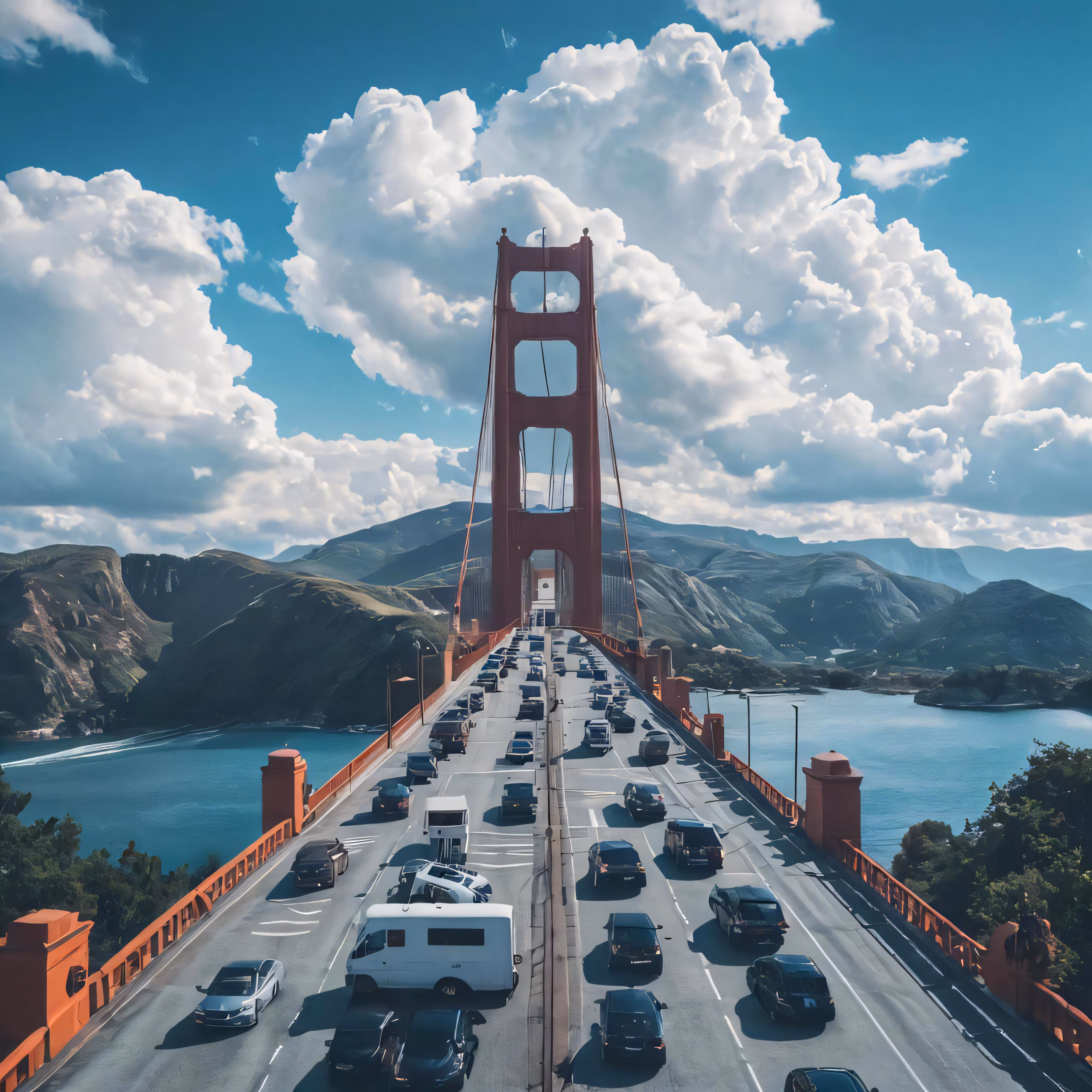 High resolution picture, free to use, a large bridge that has lots of traffic on it