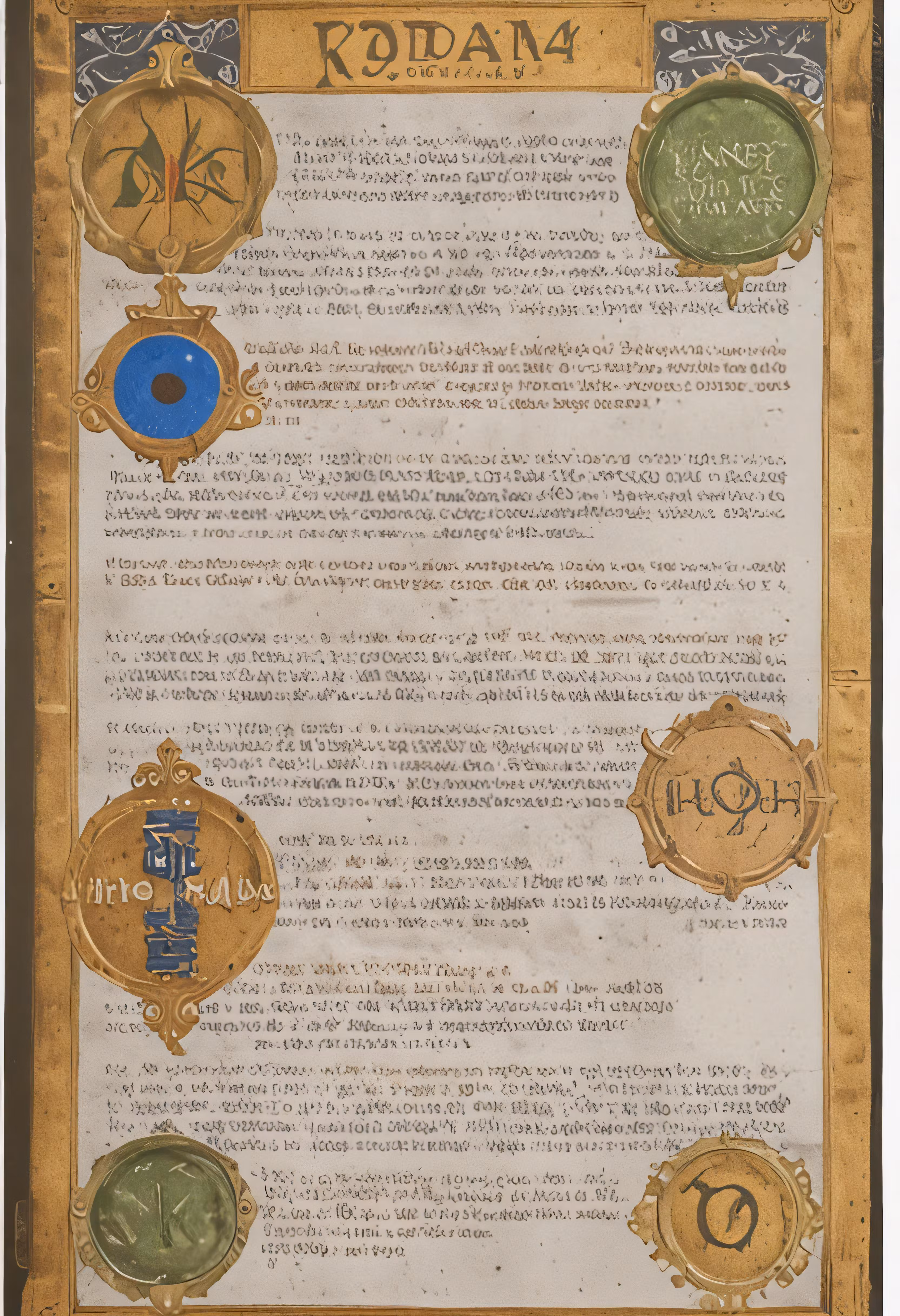 High resolution picture, free to use, a large document with gold trimmings and two circles
