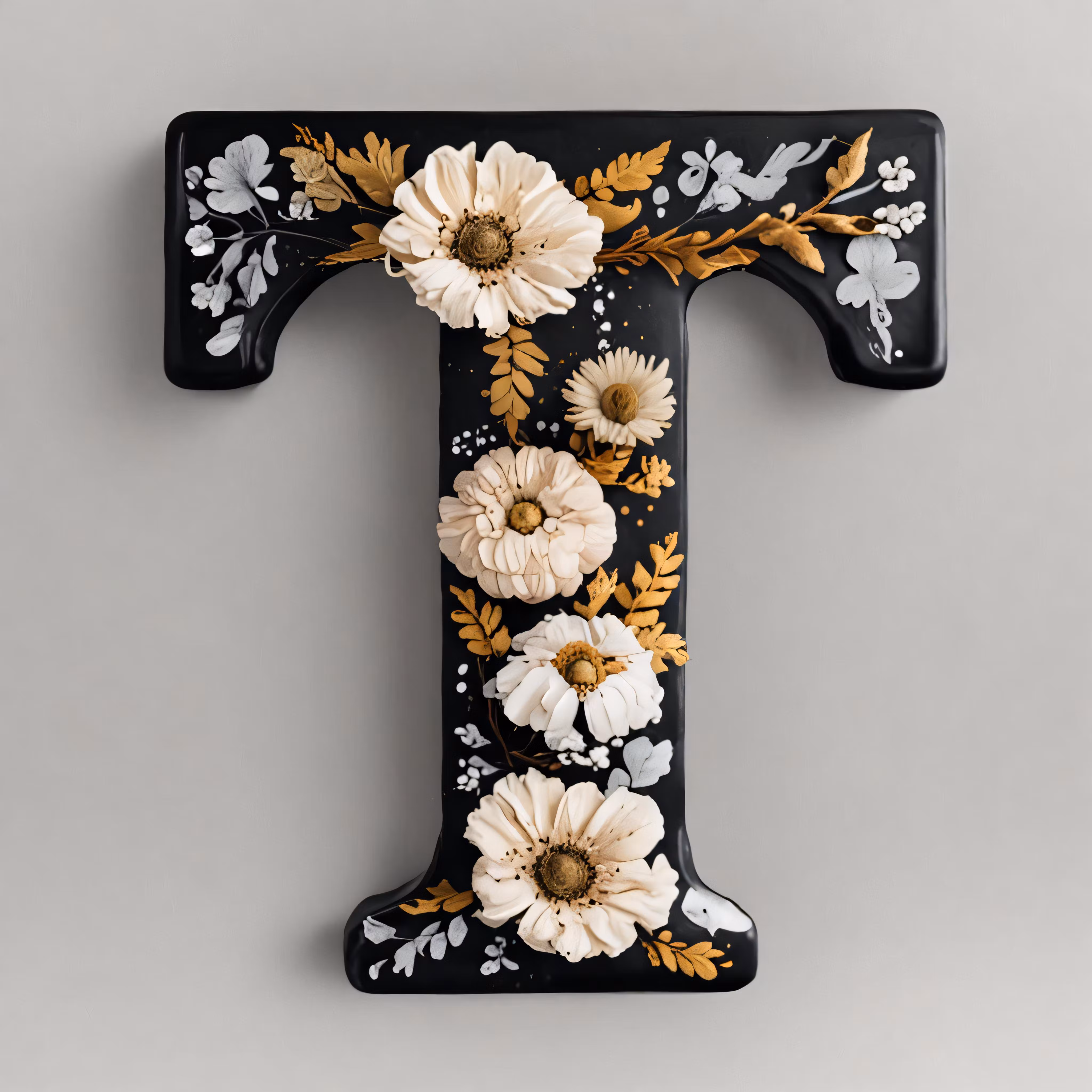 High resolution picture, free to use, a large letter t with flowers painted on it