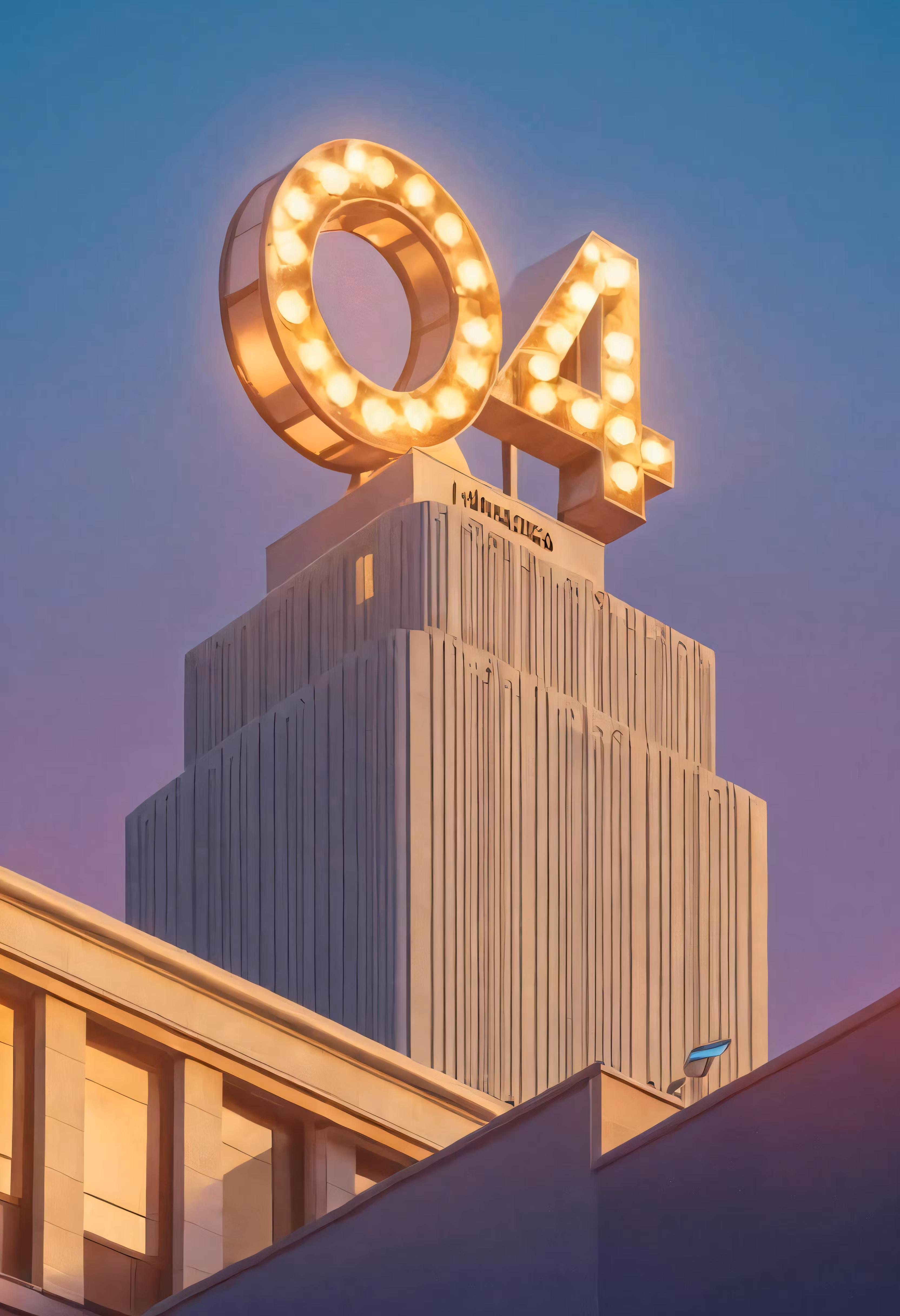 High resolution picture, free to use, a large sign with a light frame on top of a building