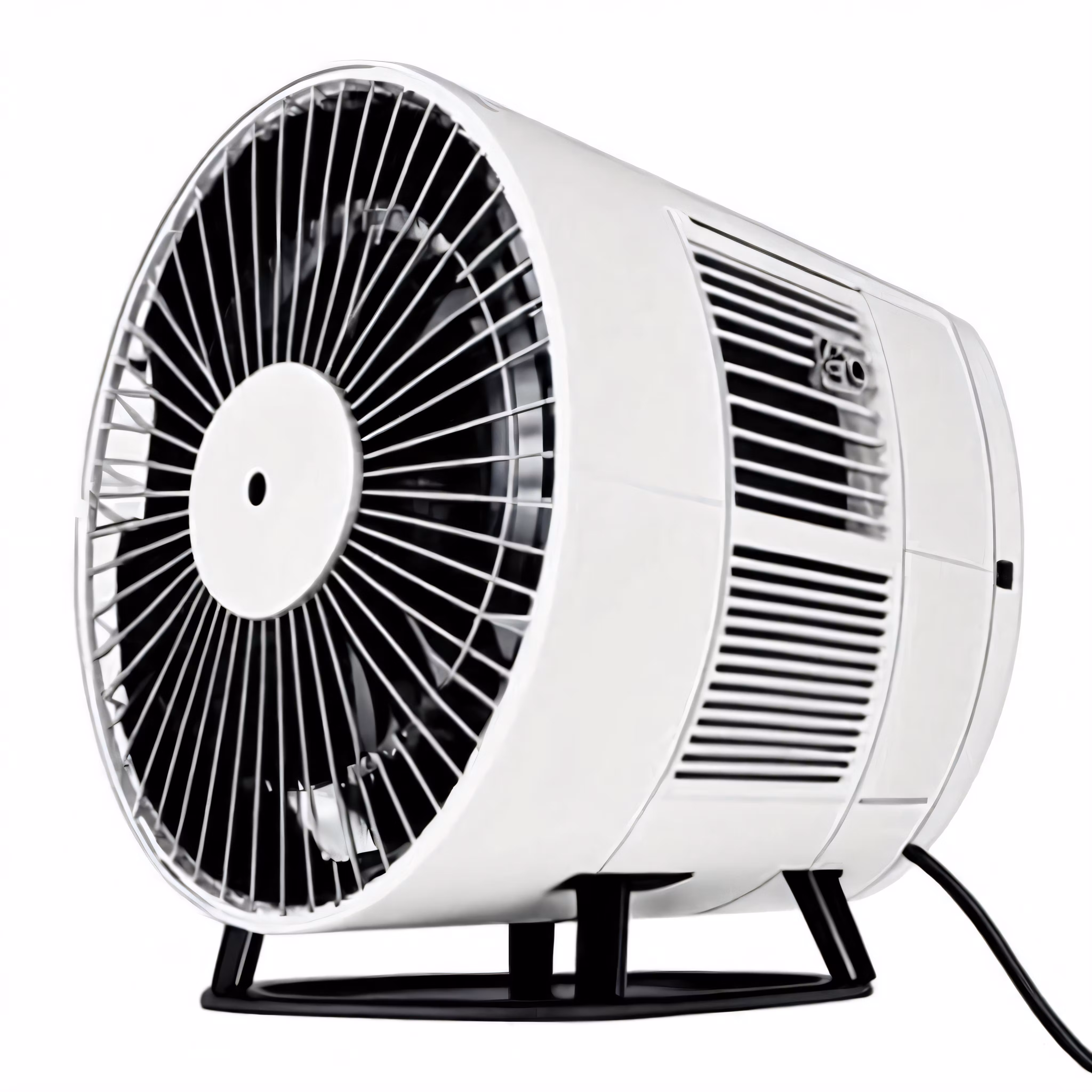 High resolution picture, free to use, a large white fan sitting on top of a metal stand