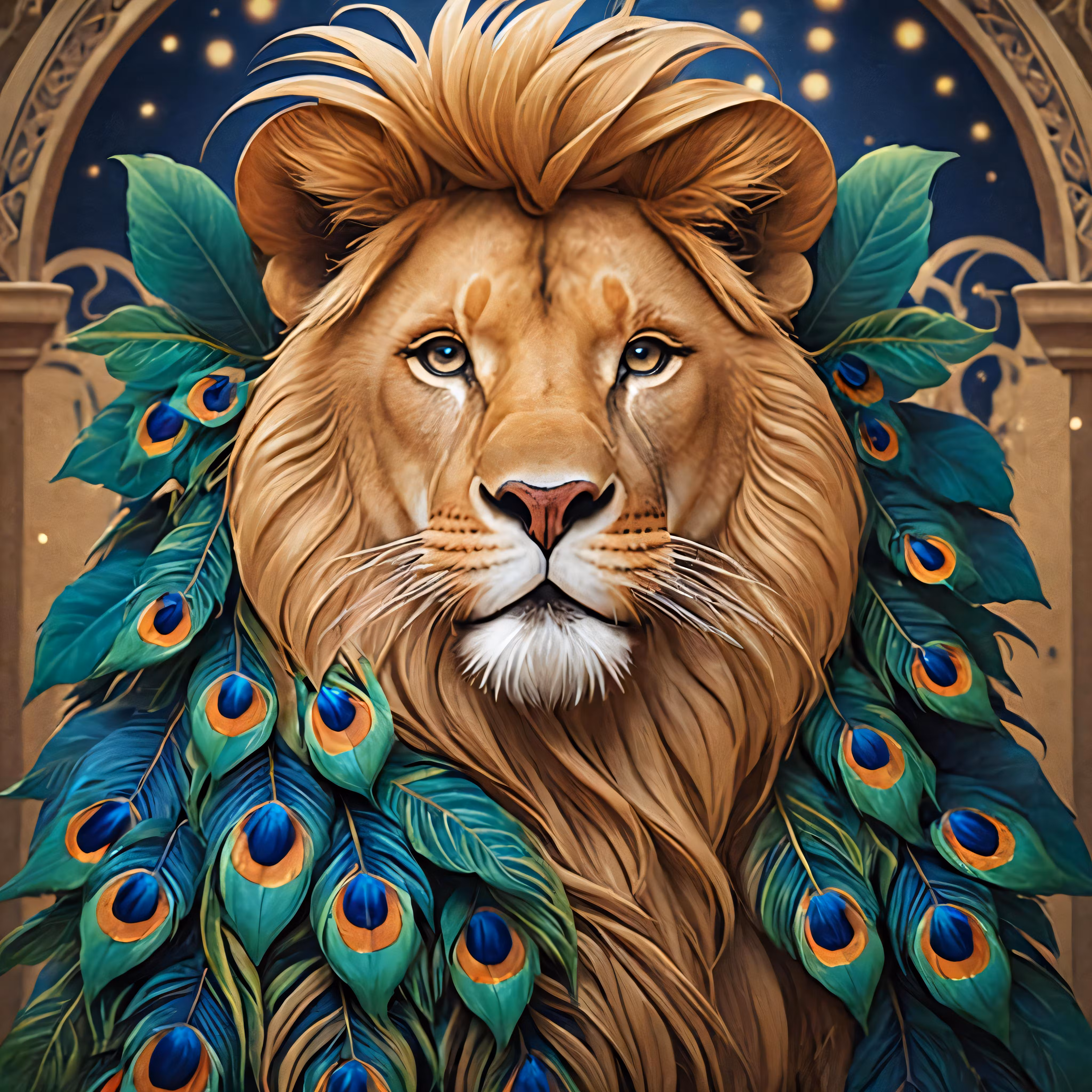 High resolution picture, free to use, a lion painted on top of another lions head