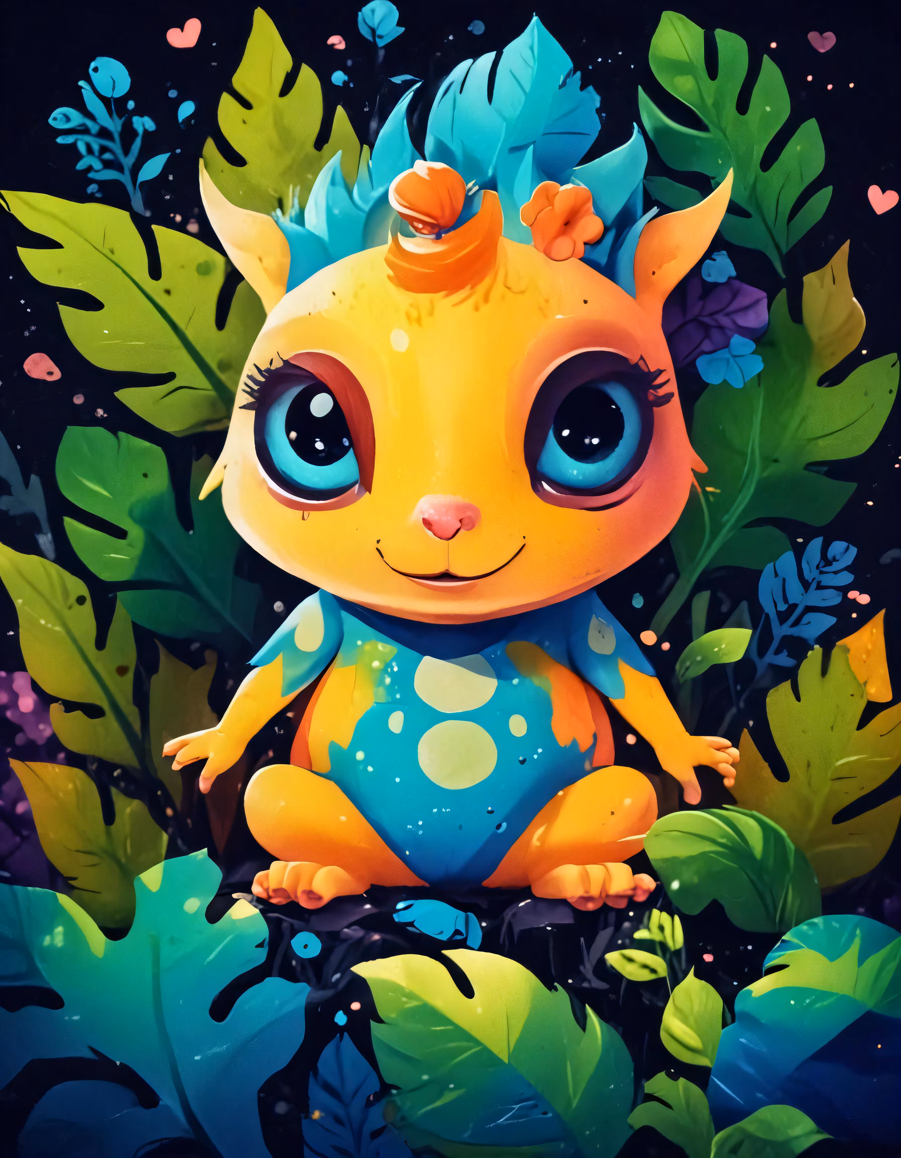High resolution picture, free to use, a little cartoon animal is sitting in the jungle