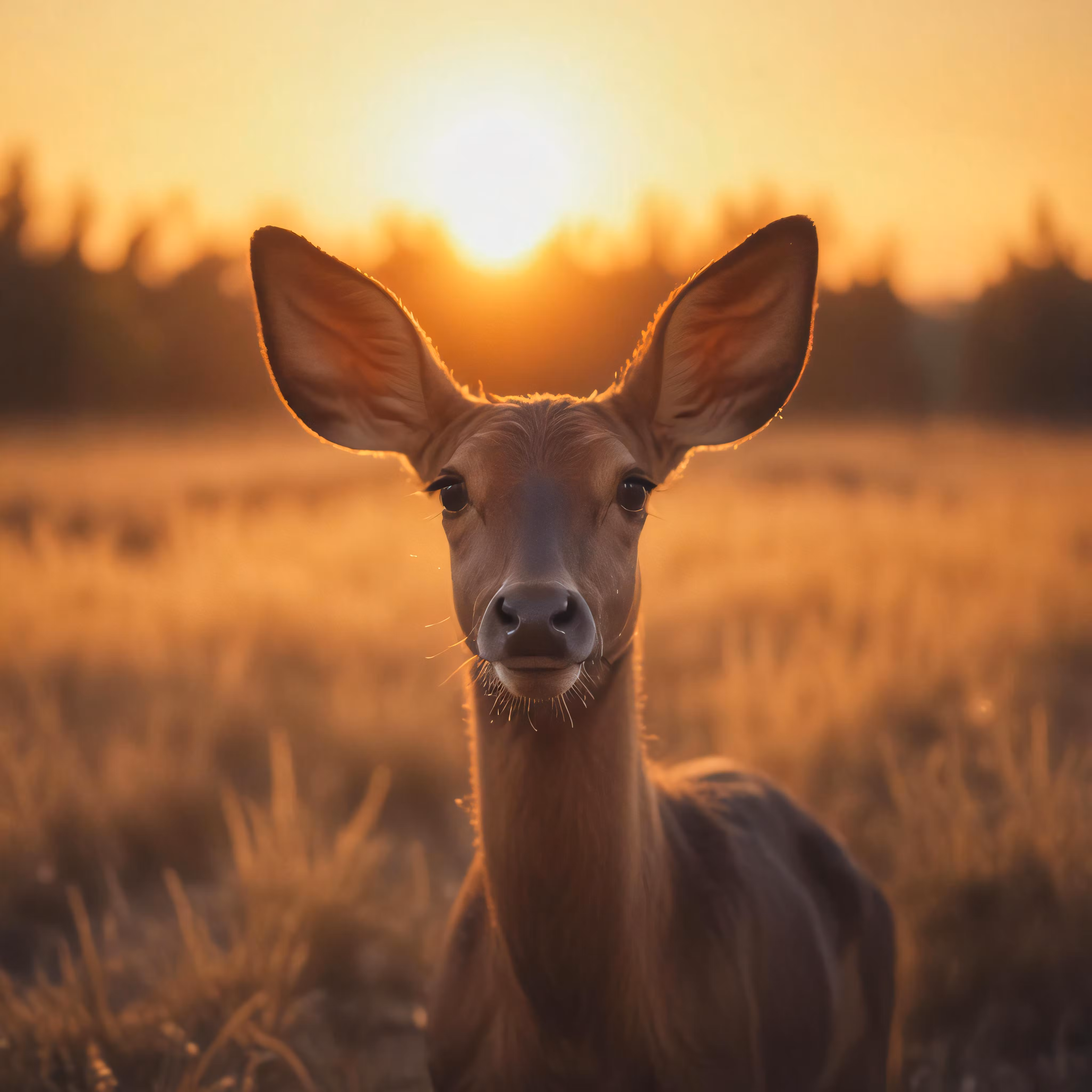 High resolution picture, free to use, a little deer standing in a field at sunset