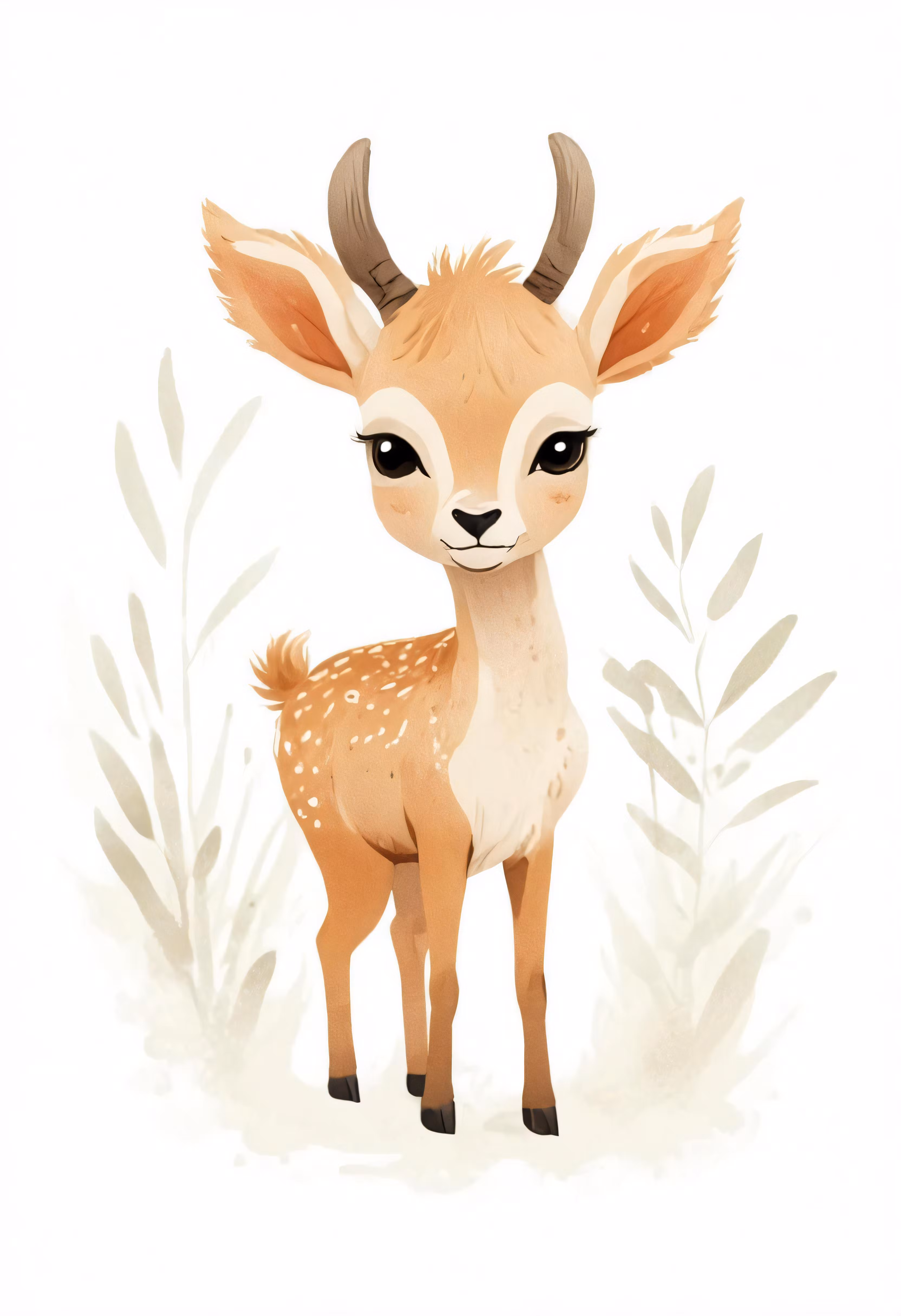 High resolution picture, free to use, a little deer standing in the grass next to some plants