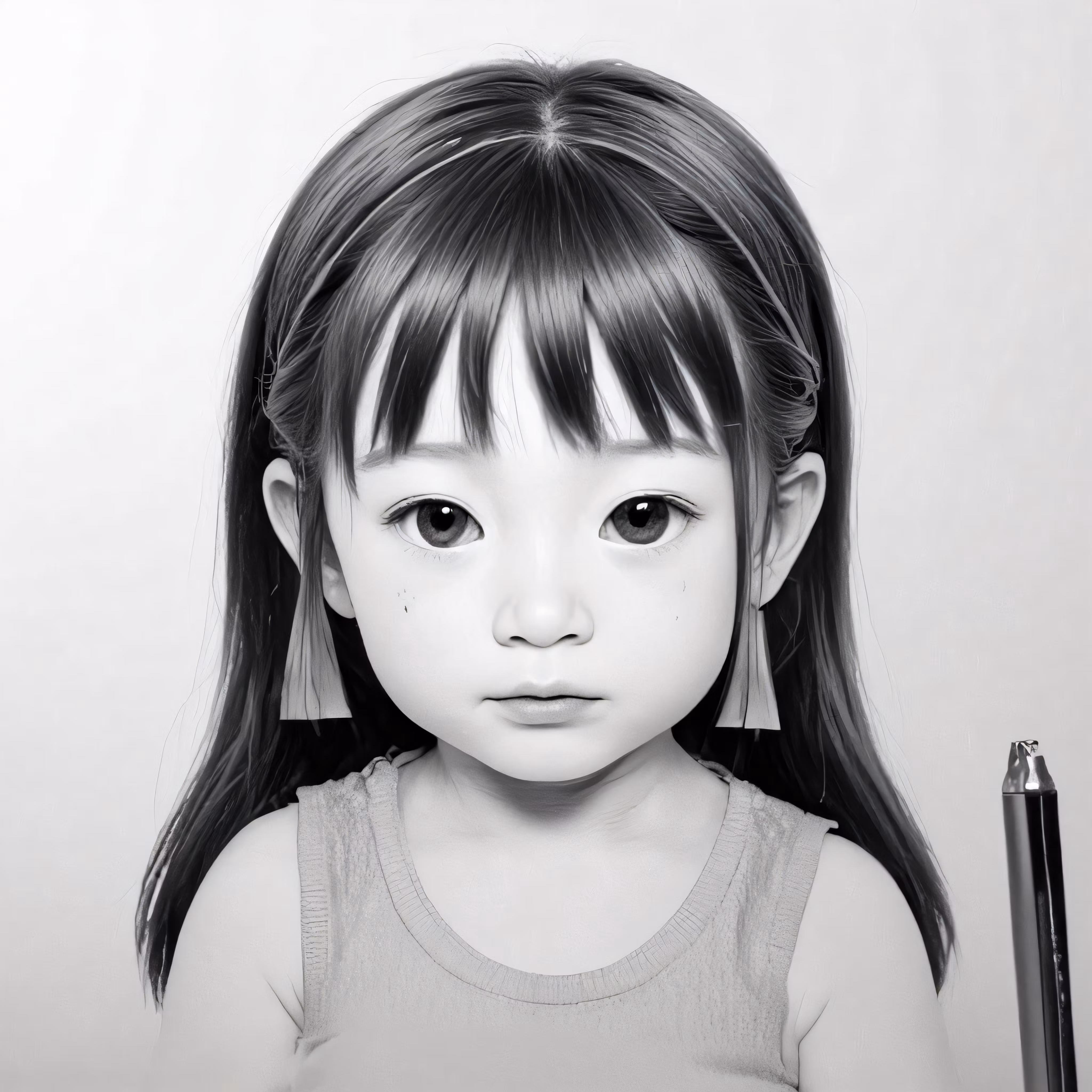 High resolution picture, free to use, a little girl is holding a pen and a pencil