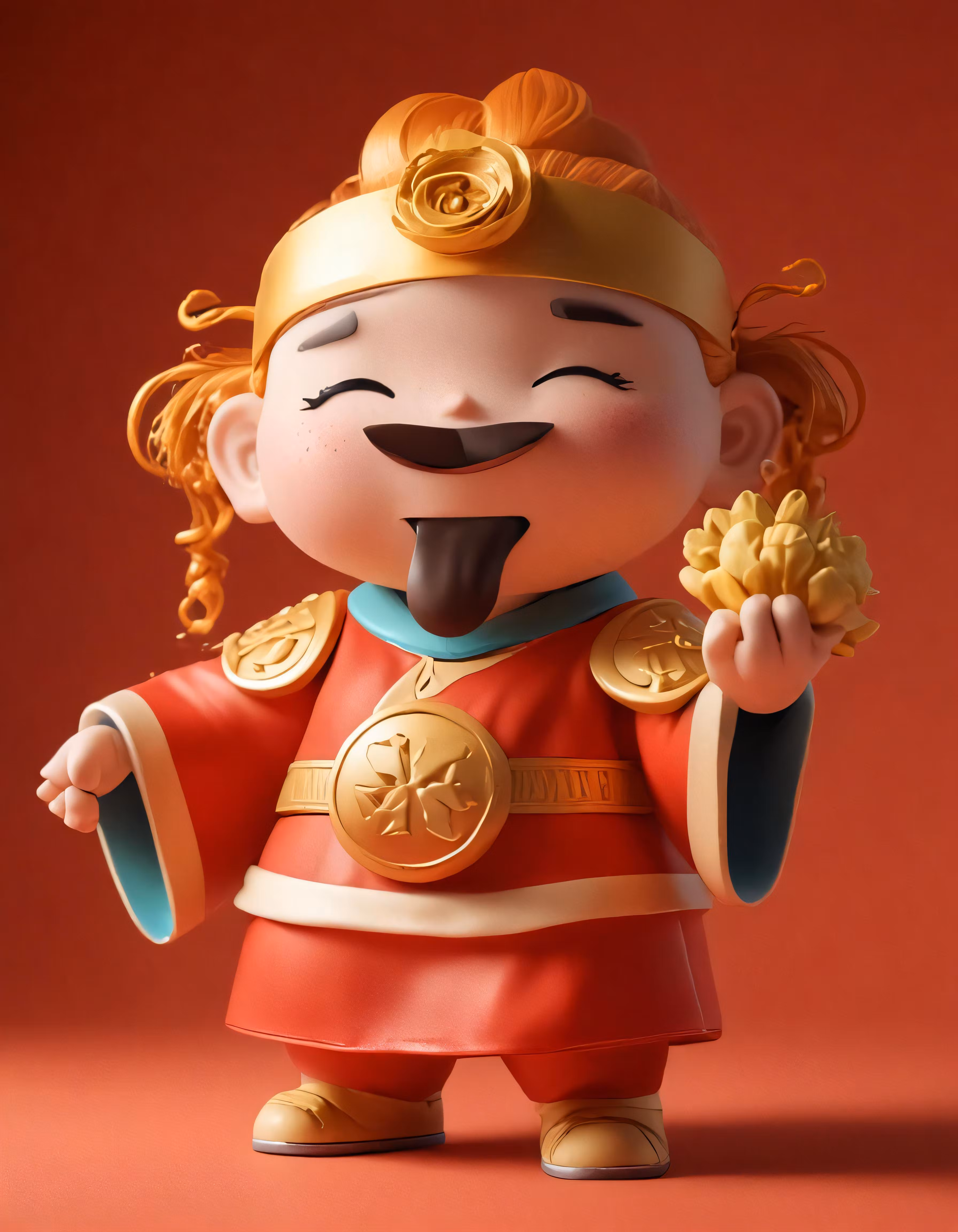 High resolution picture, free to use, a little toy is dressed as a girl and holding some kind of food
