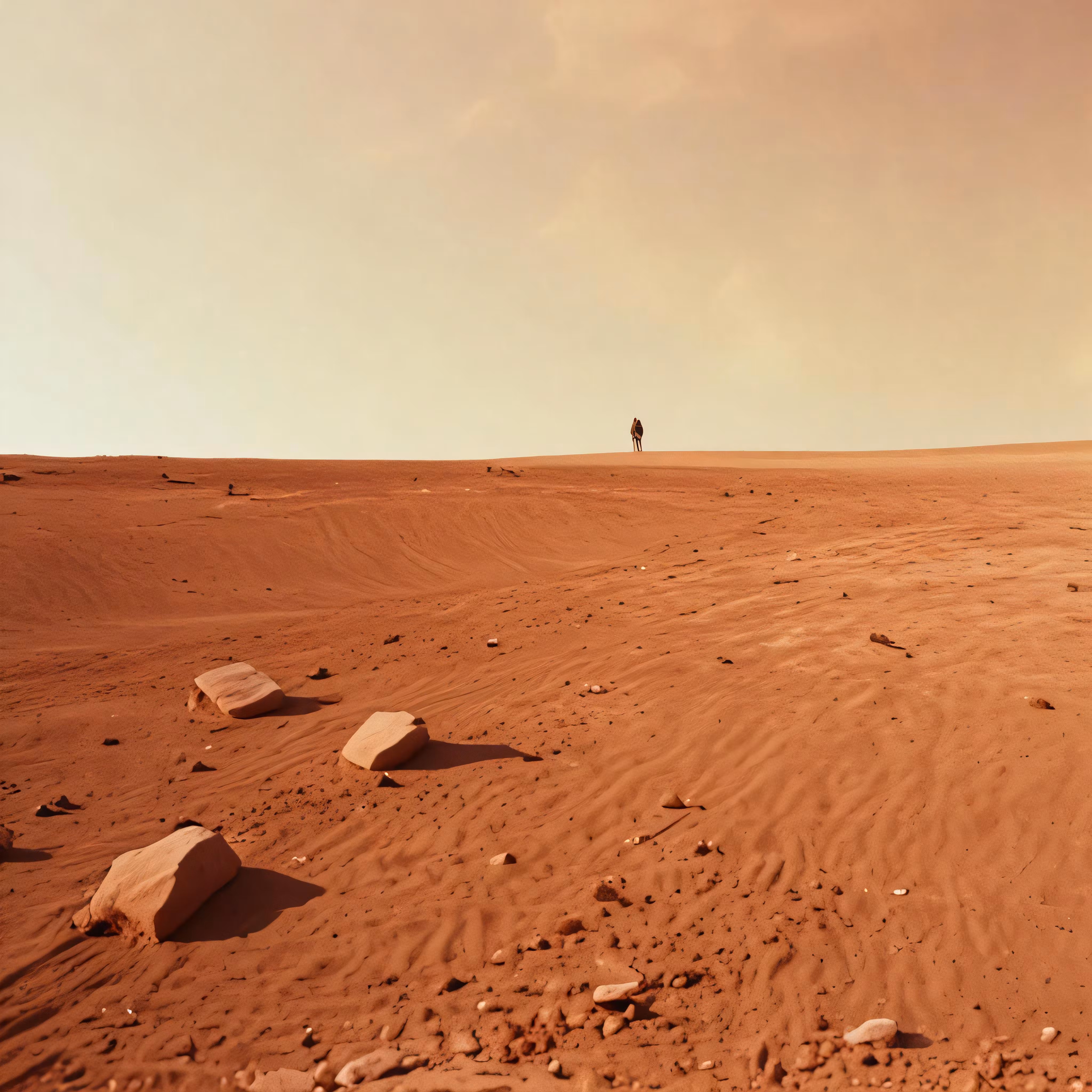High resolution picture, free to use, a lone person walking across a desert in the distance
