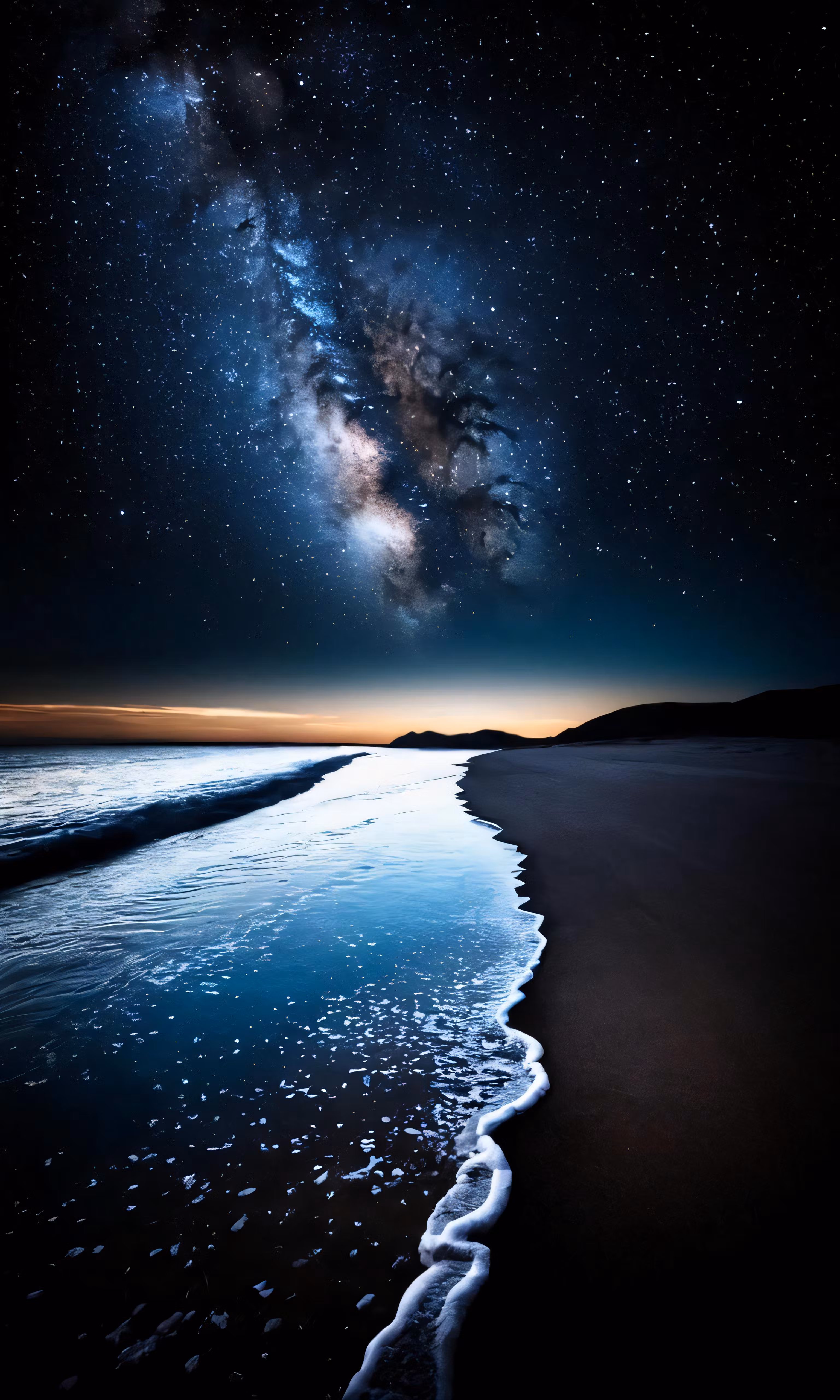 High resolution picture, free to use, a long exposure photograph of the sky over a beach