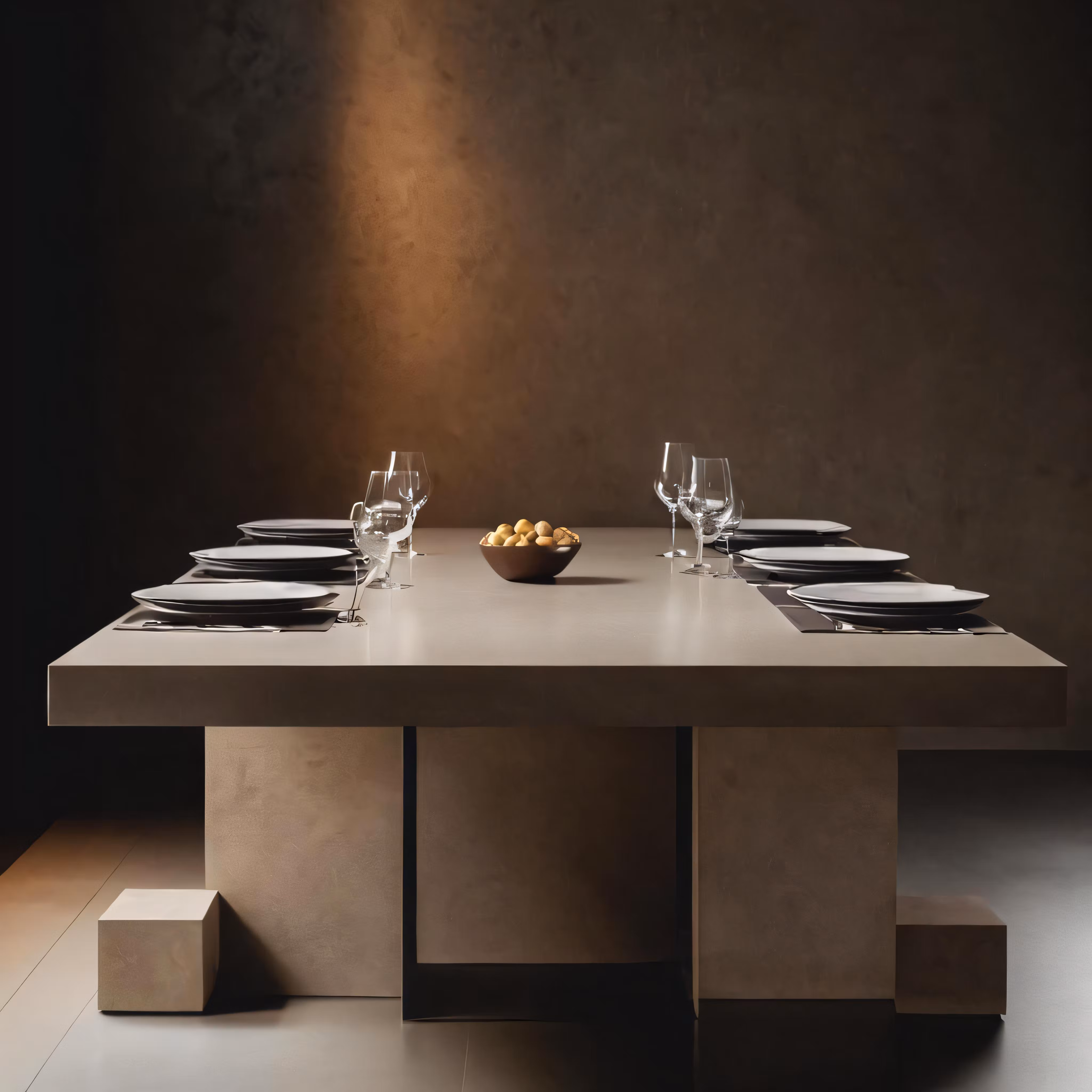 High resolution picture, free to use, a long table with plates on it in a room