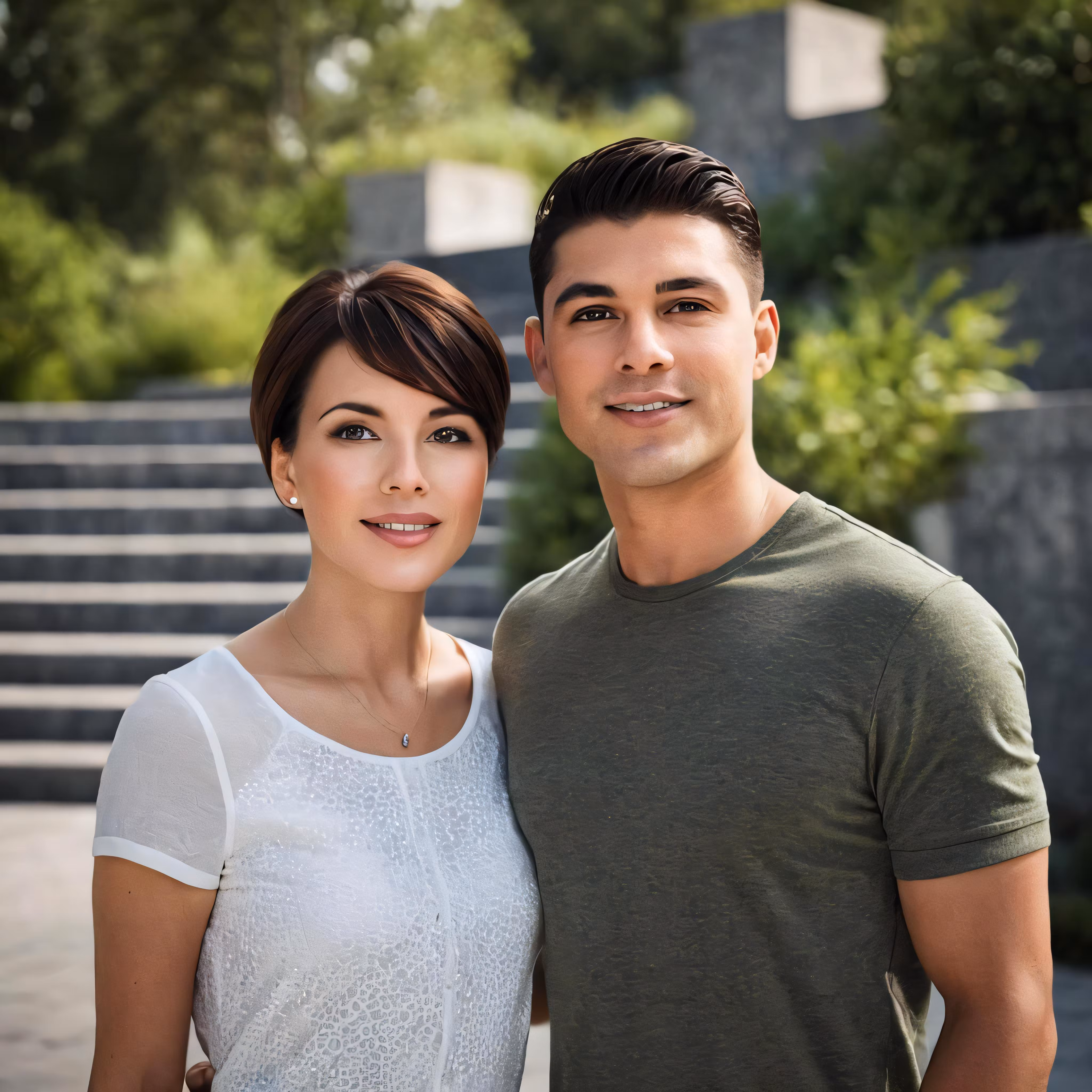 High resolution picture, free to use, a man and woman are posing together in front of stairs