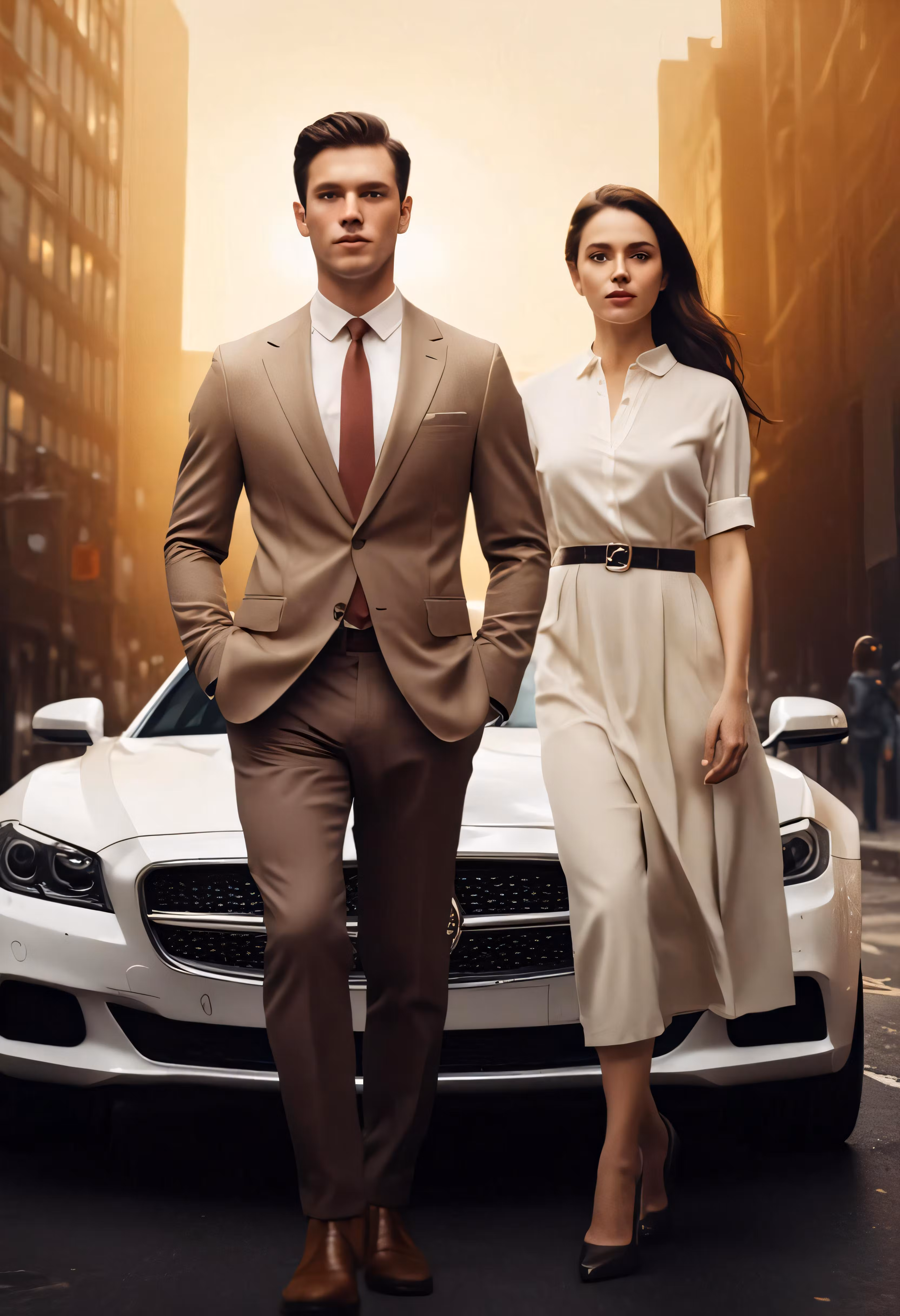 High resolution picture, free to use, a man and woman standing next to each other in front of a car