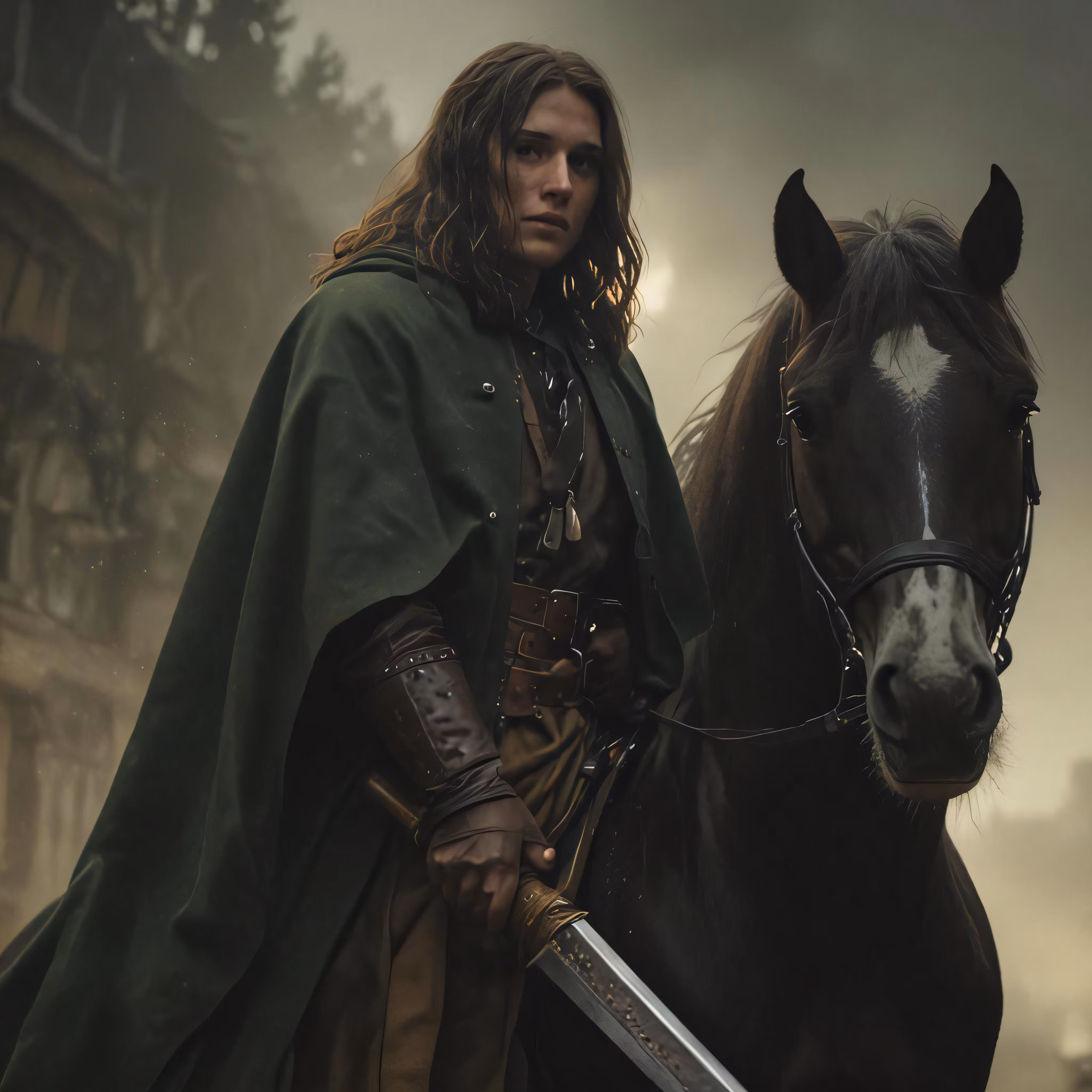 High resolution picture, free to use, a man dressed in a knight outfit stands next to a horse