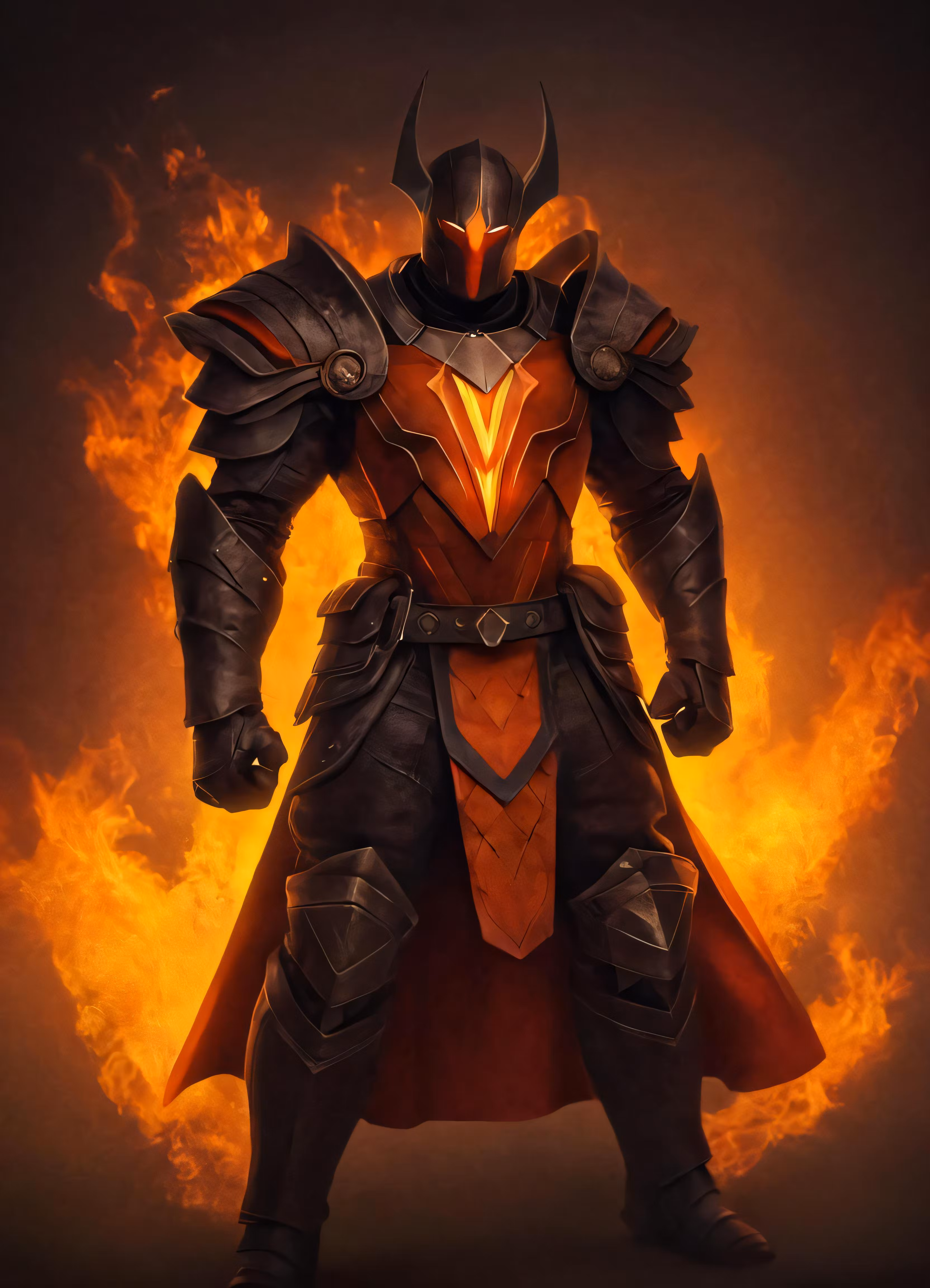 High resolution picture, free to use, a man dressed in armor standing in front of fire