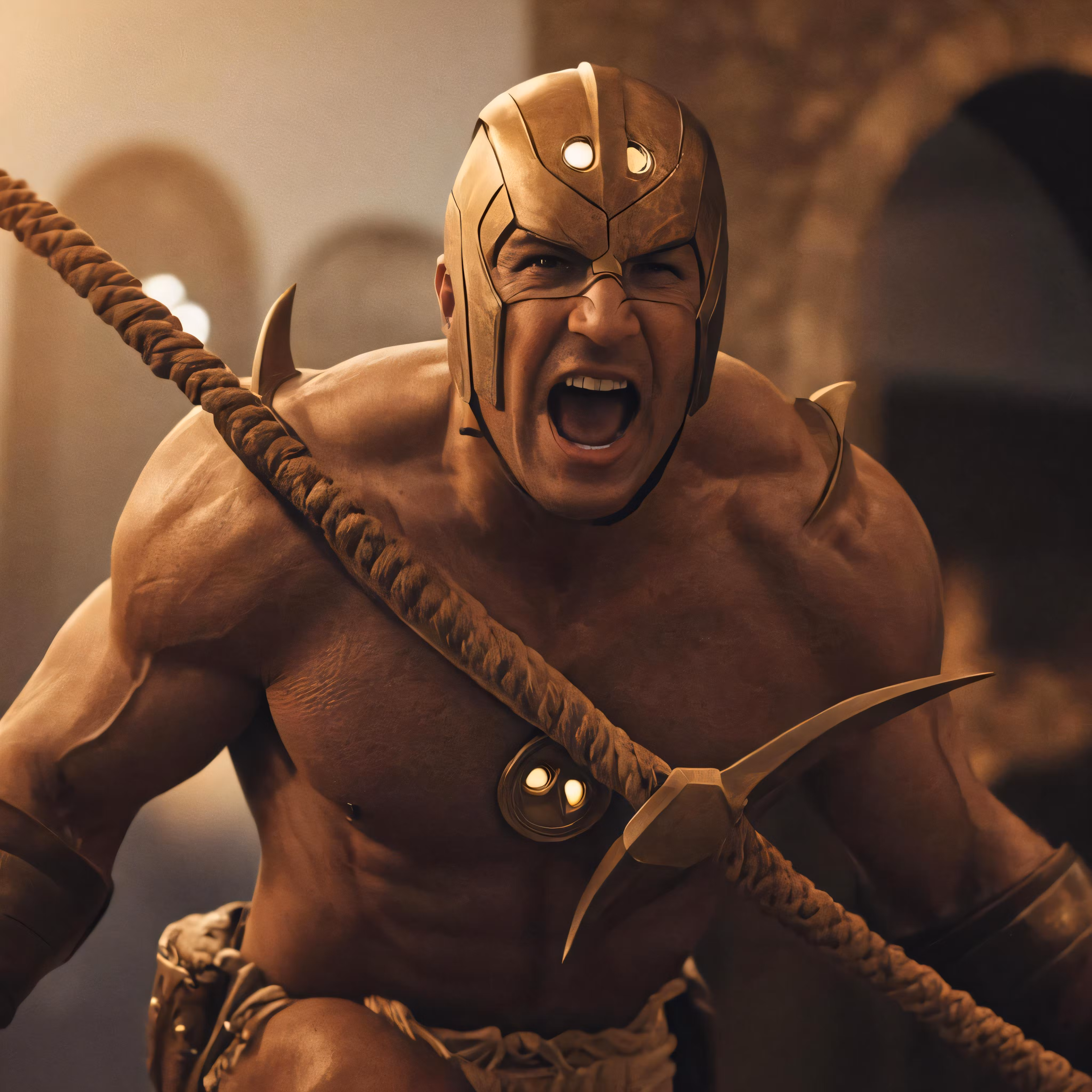 High resolution picture, free to use, a man dressed like a god has his hands tied up