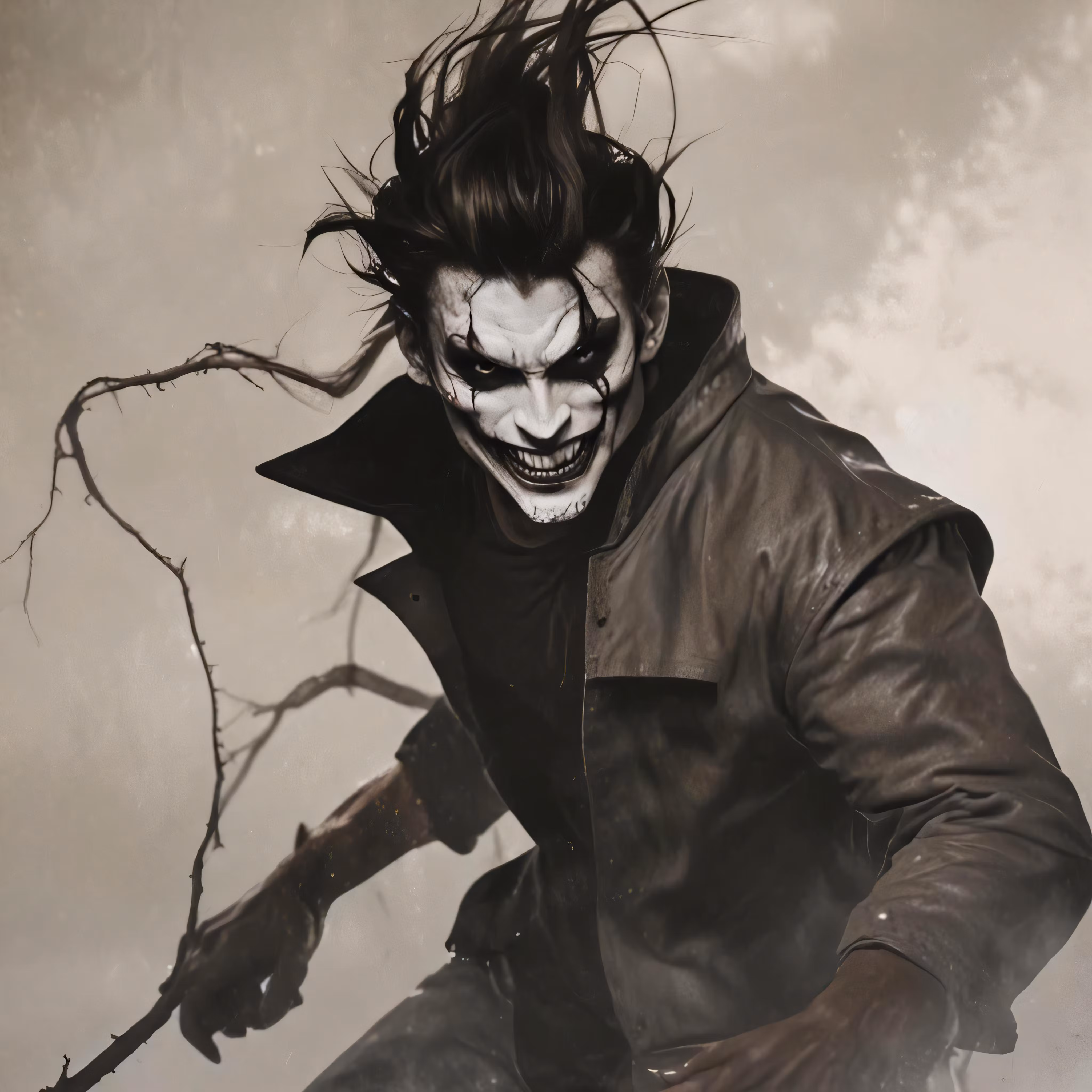 High resolution picture, free to use, a man dressed up as the joker with his hands on his chest