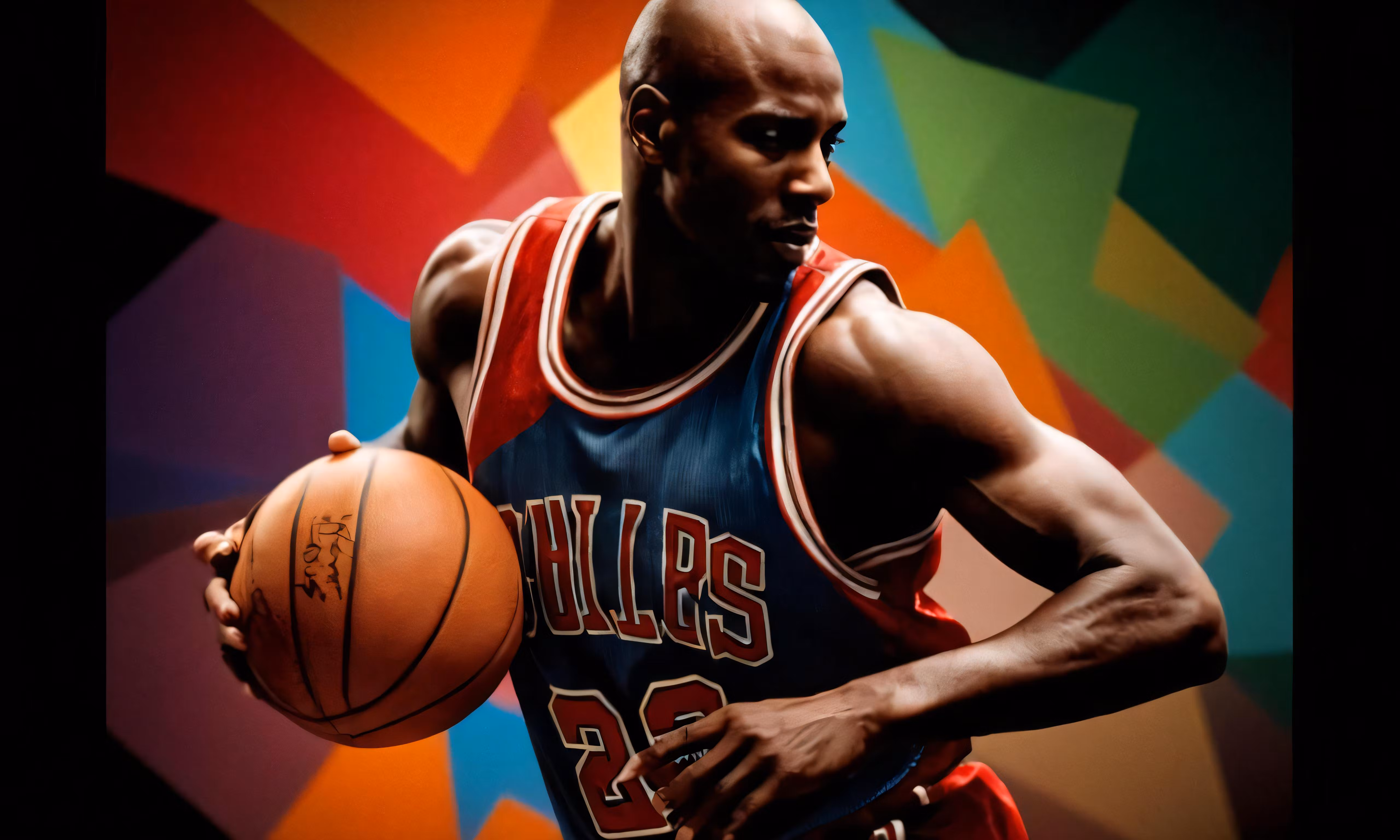 High resolution picture, free to use, a man holding a basketball while standing in front of a multi colored wall