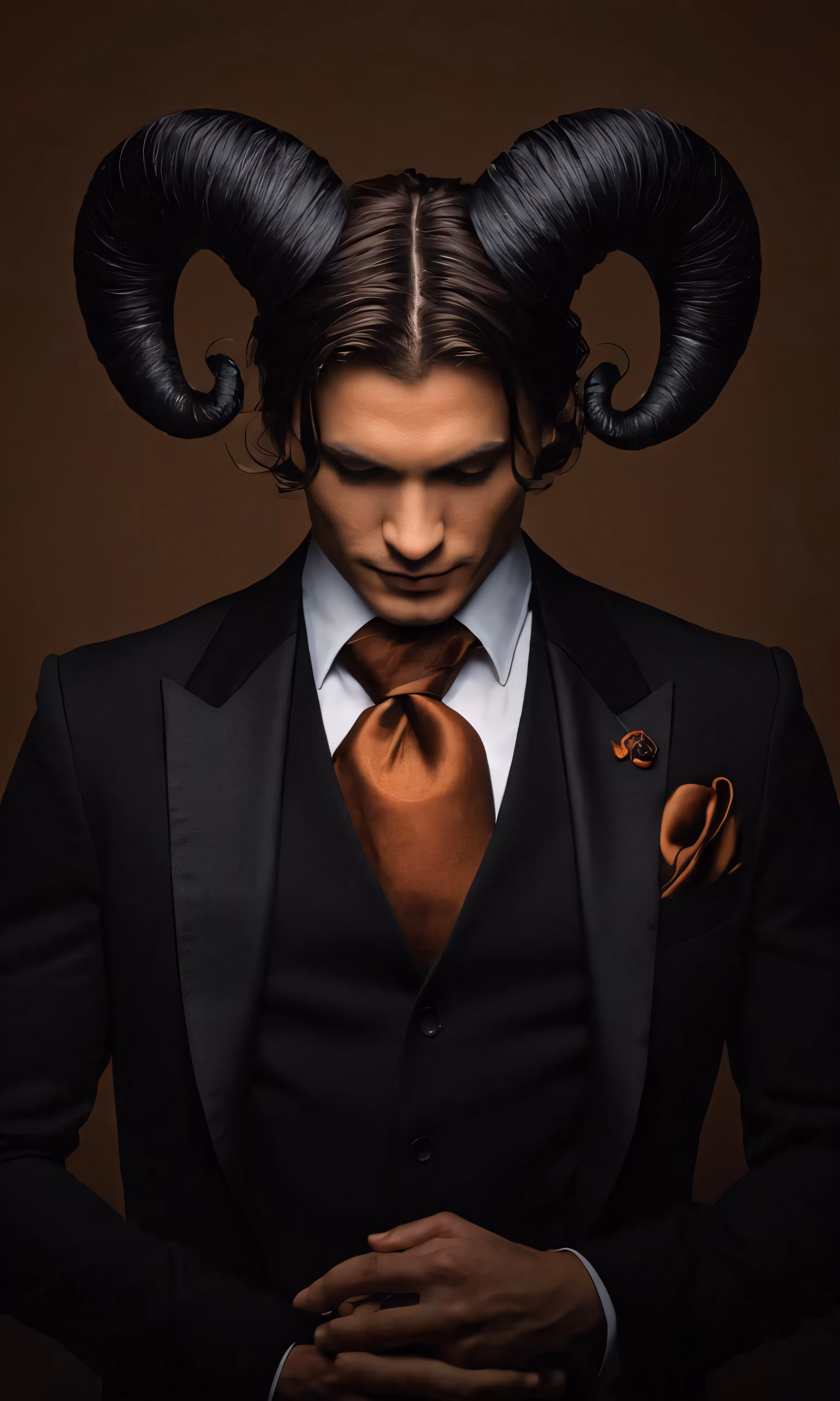 High resolution picture, free to use, a man in a suit and horns with his hands crossed