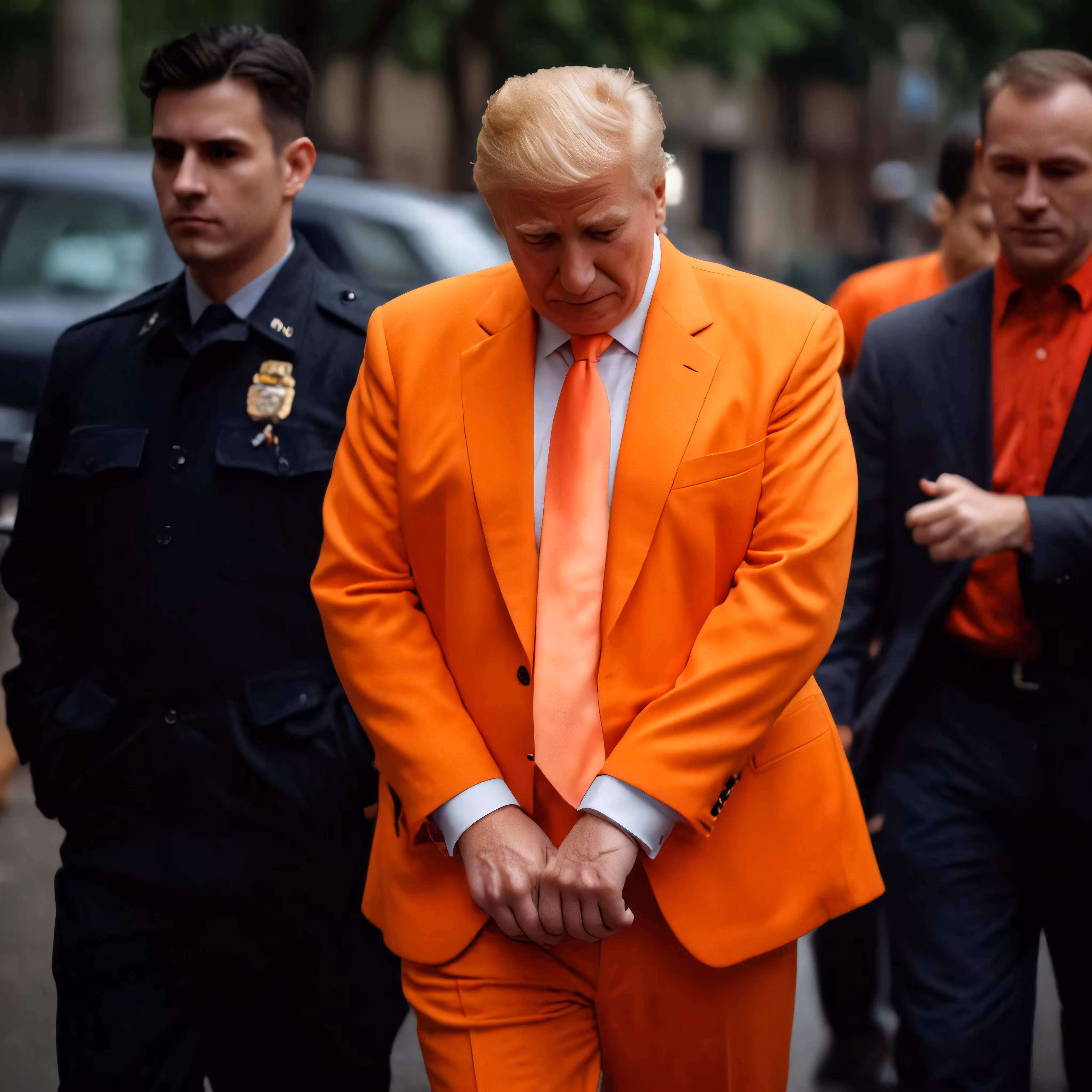 High resolution picture, free to use, a man in an orange suit with an orange tie