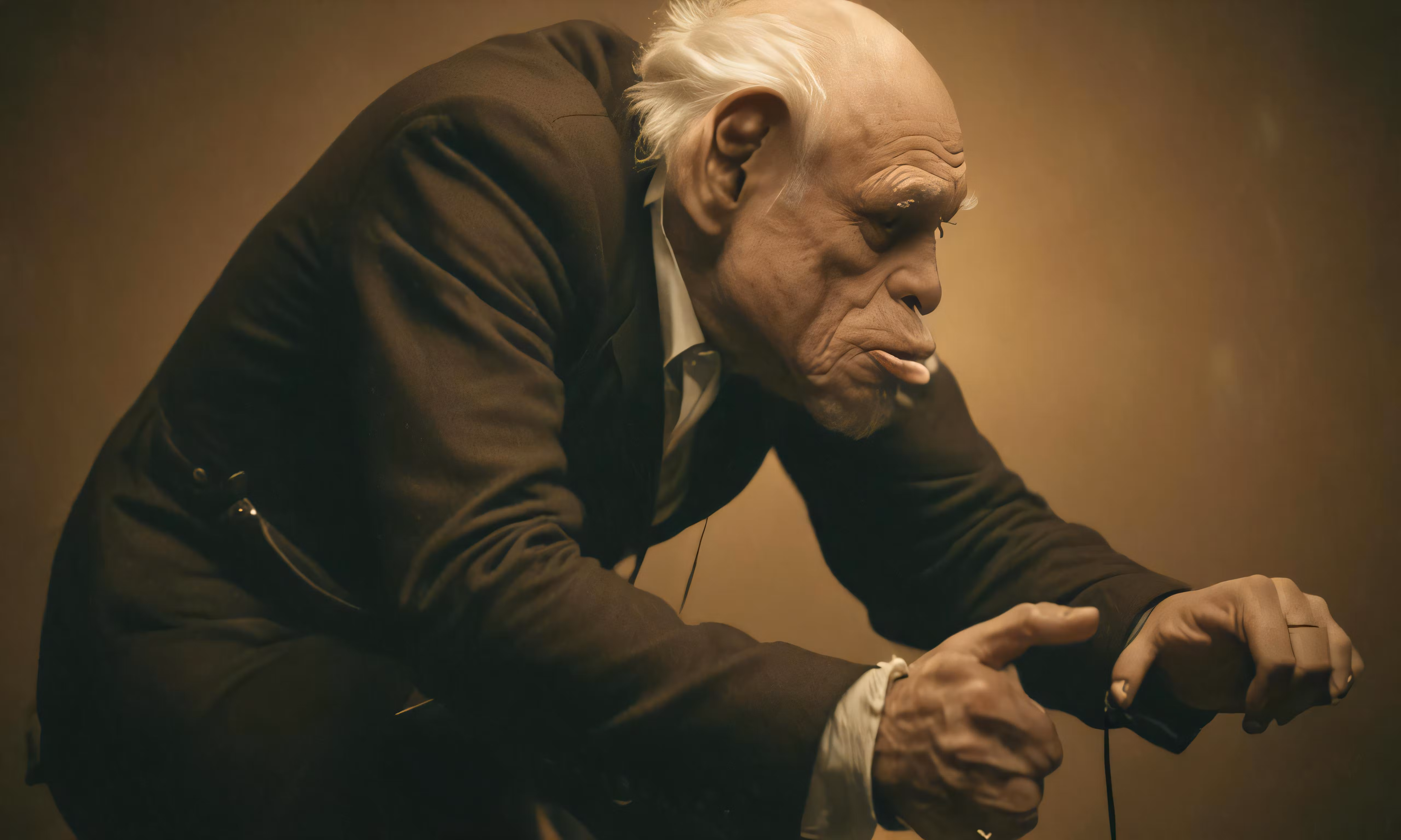 High resolution picture, free to use, a man in black jacket and white hair smoking