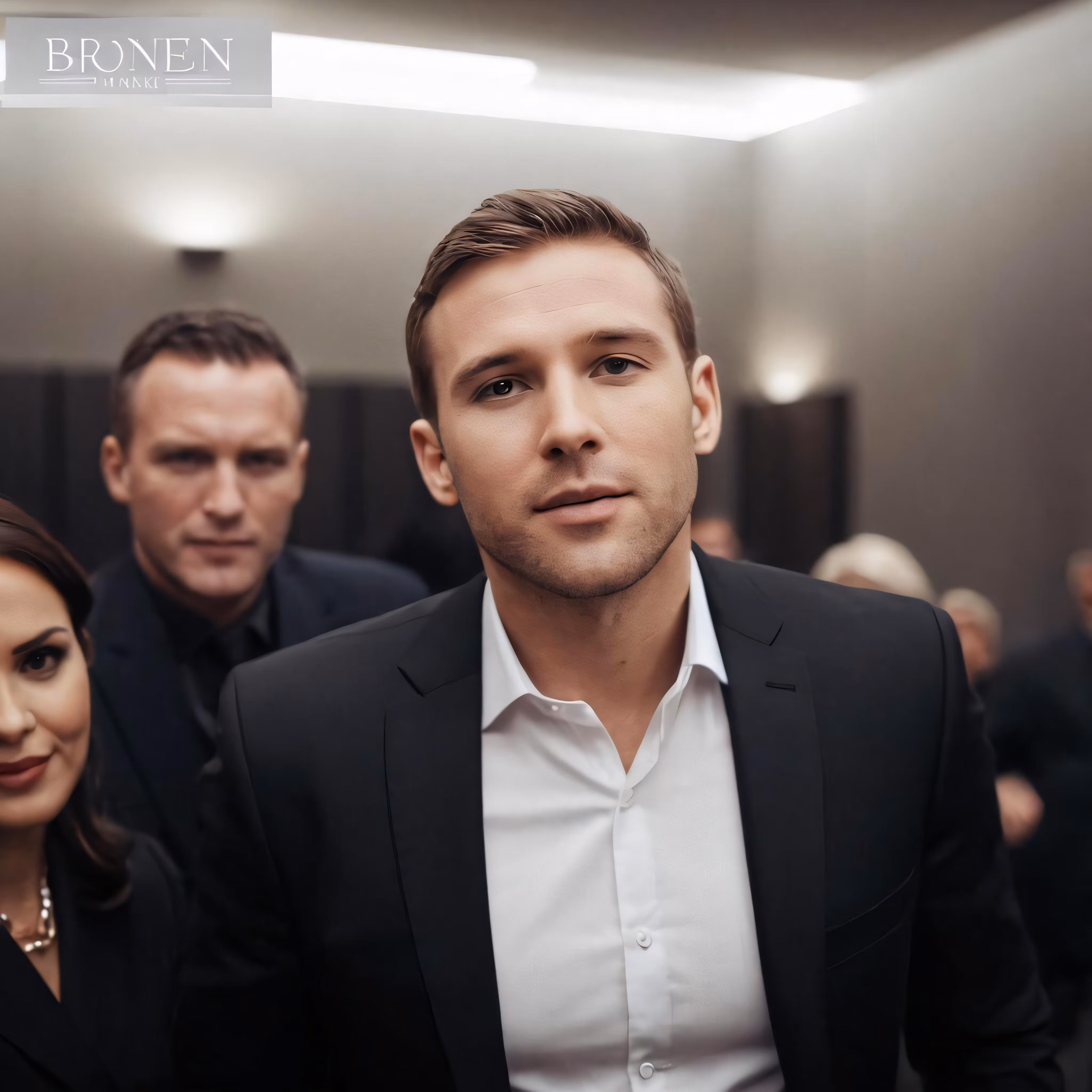 High resolution picture, free to use, a man is looking into the camera with others in the background