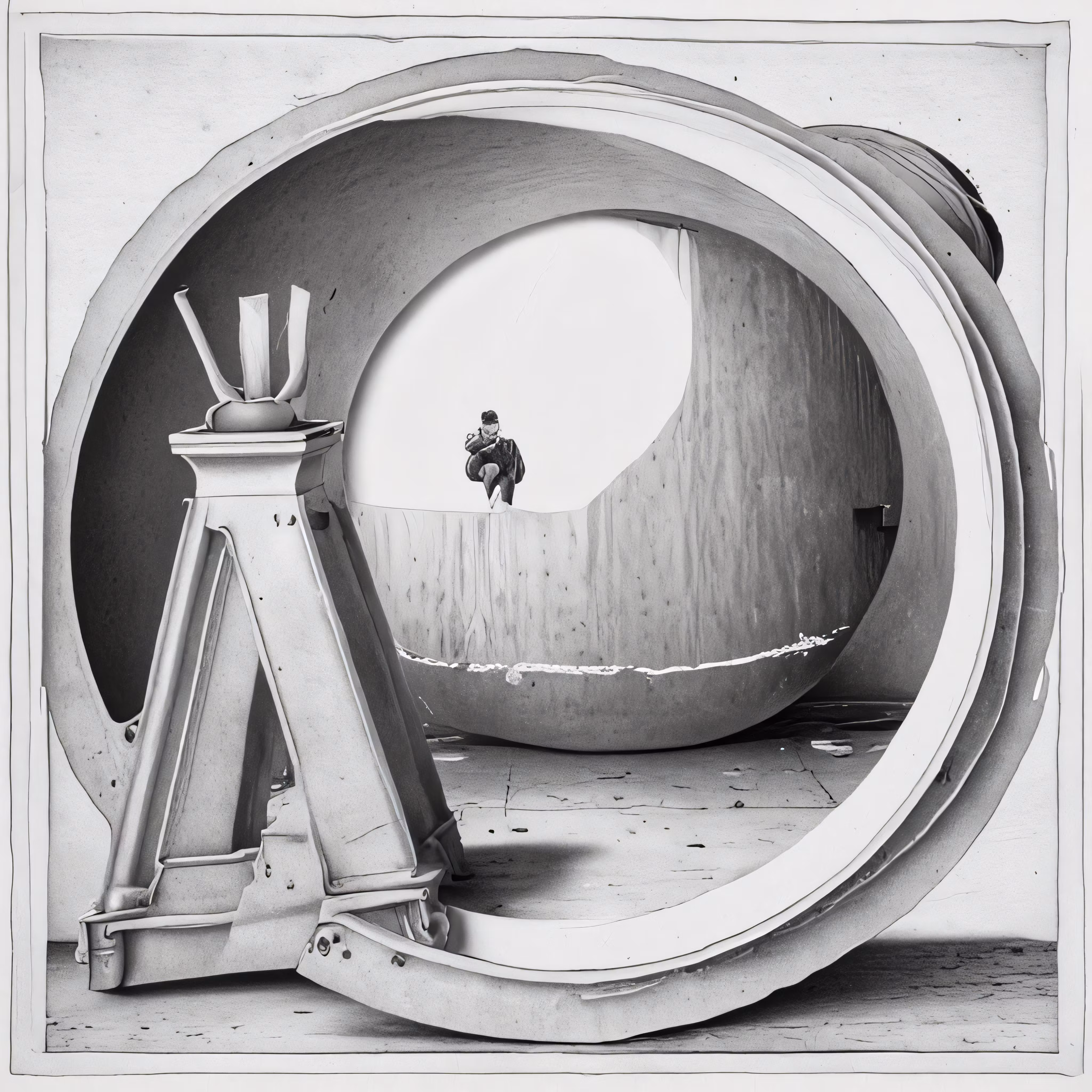 High resolution picture, free to use, a man is on a large object near some stairs