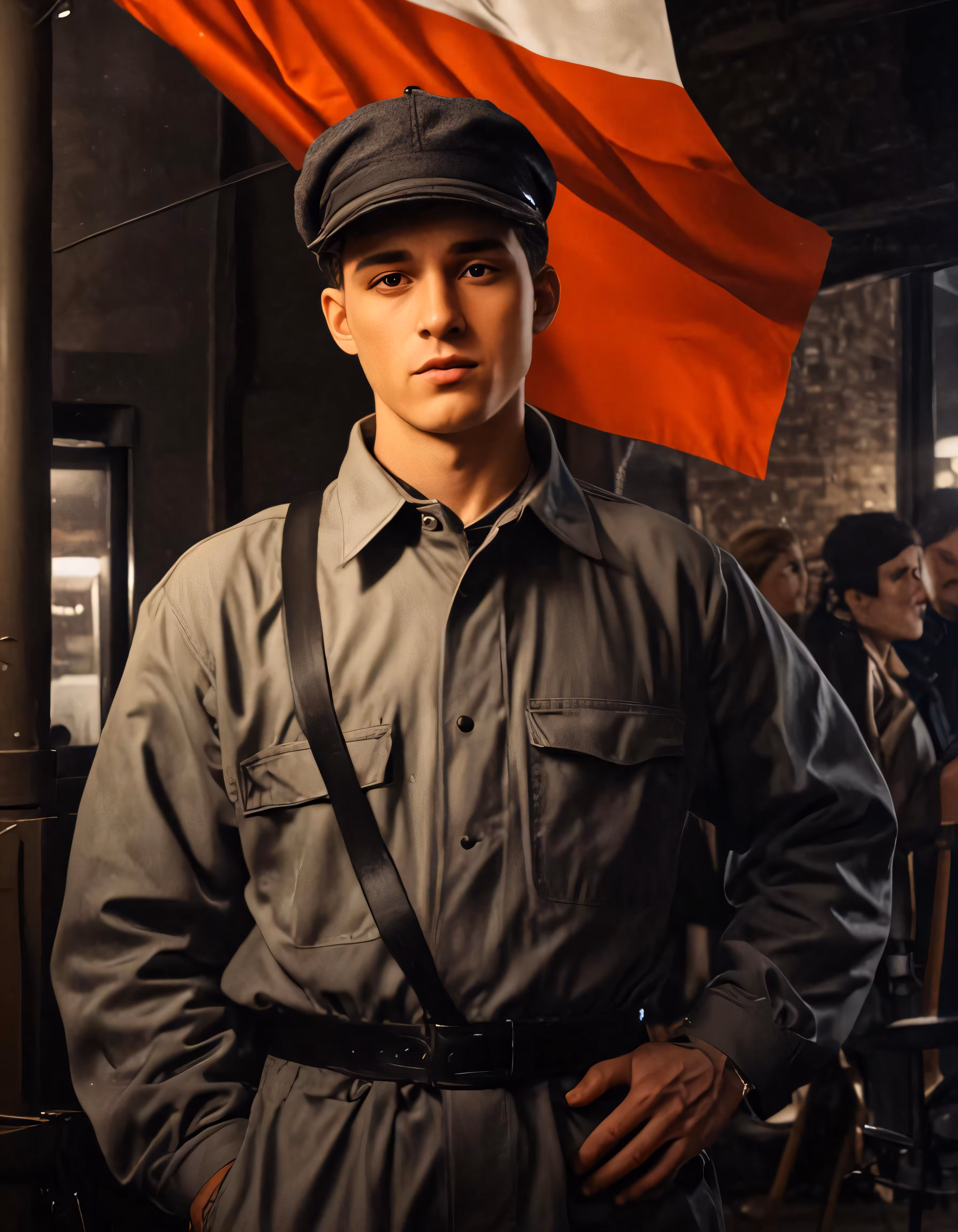 High resolution picture, free to use, a man is wearing a hat, uniform and a tie