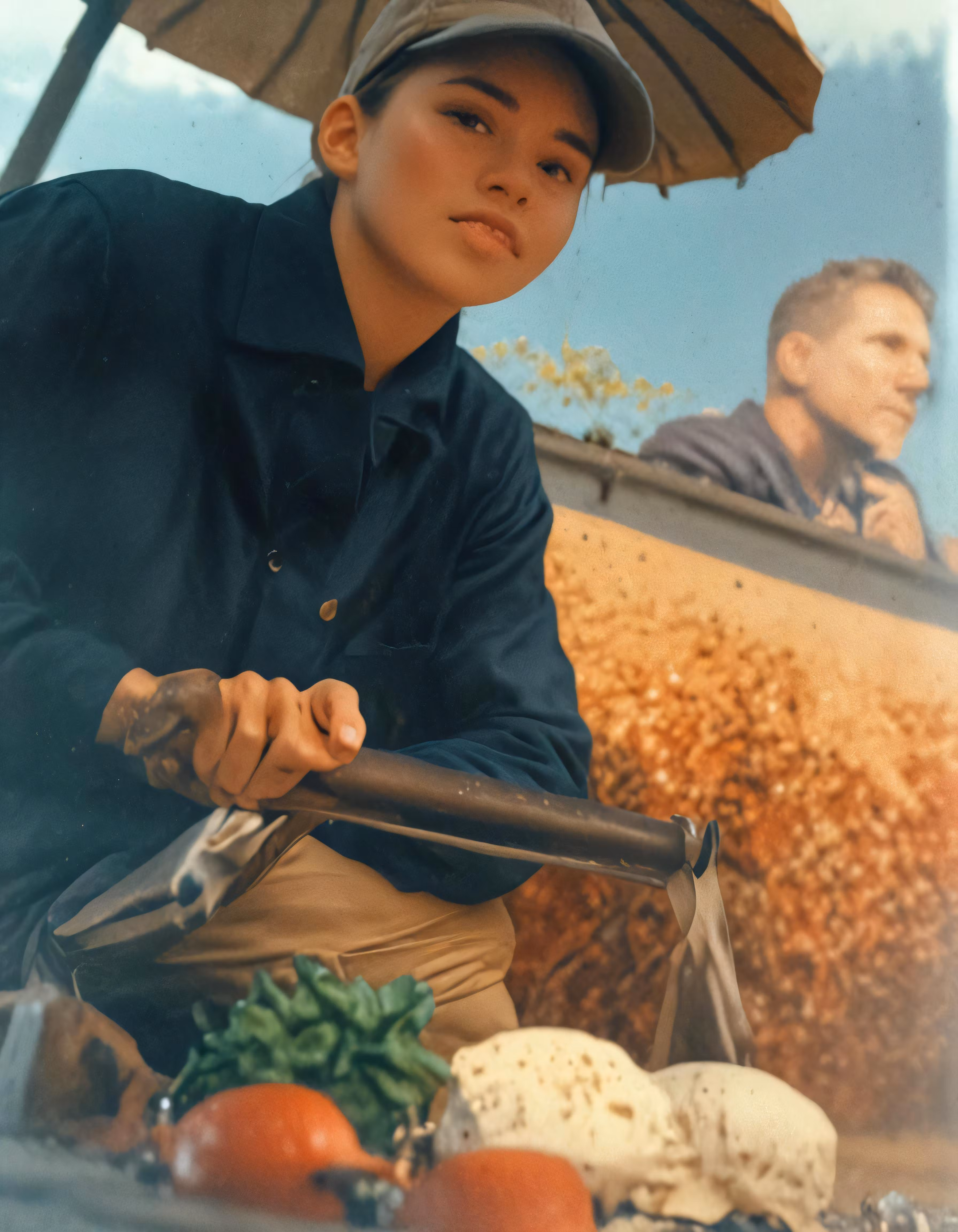 High resolution picture, free to use, a man leaning over an umbrella next to vegetables