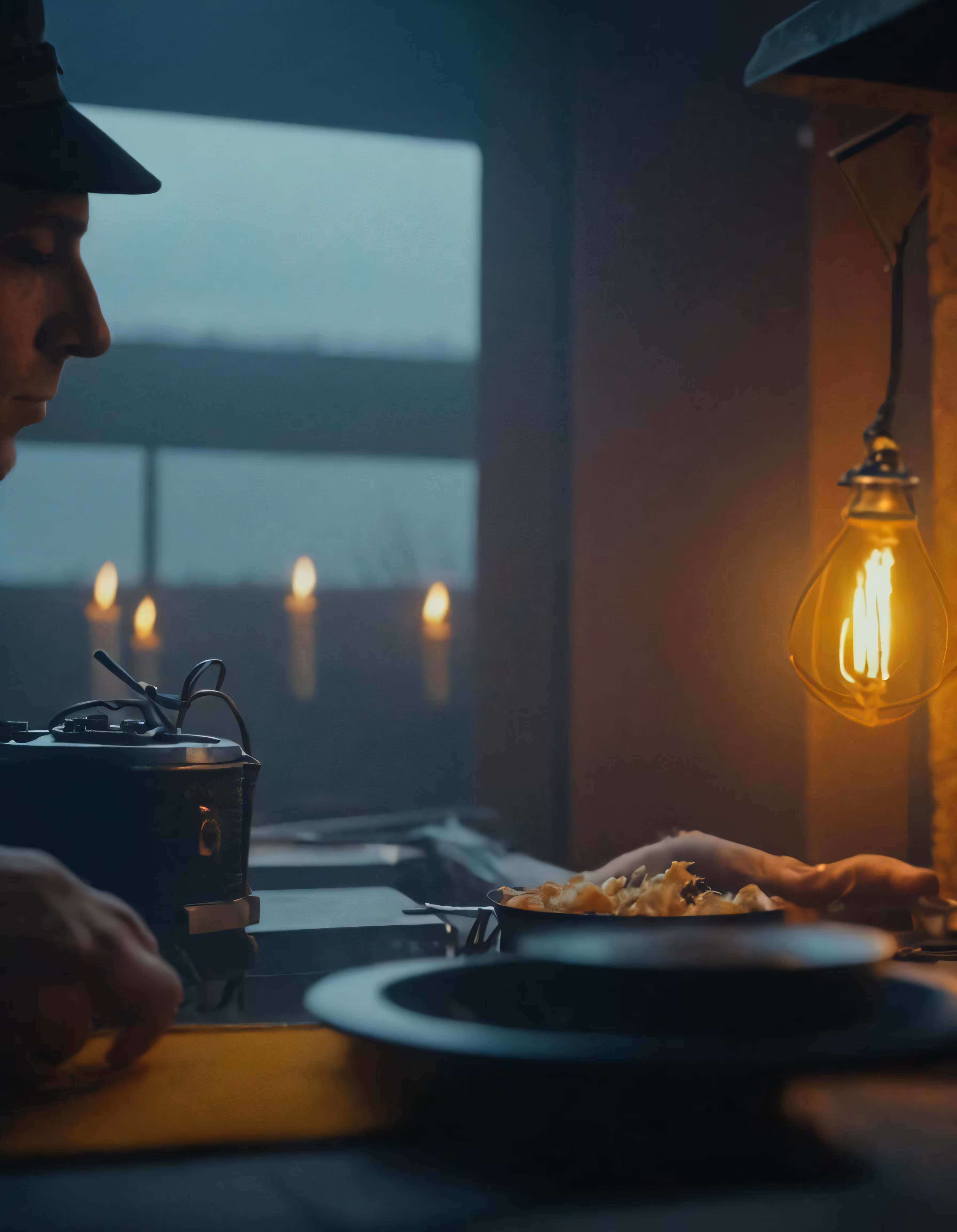 High resolution picture, free to use, a man sitting at a table with a plate of food