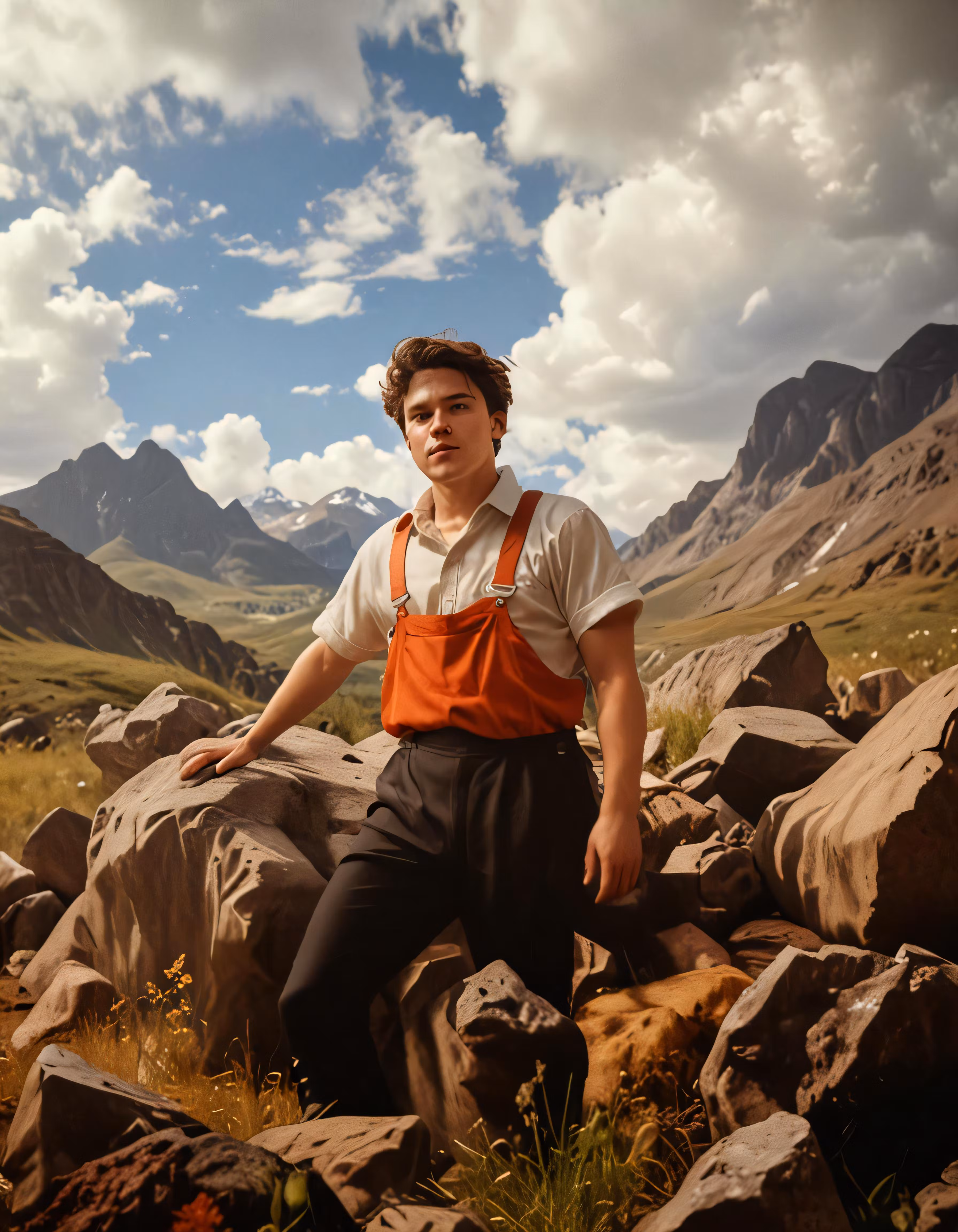 High resolution picture, free to use, a man sitting on a large rocky hill