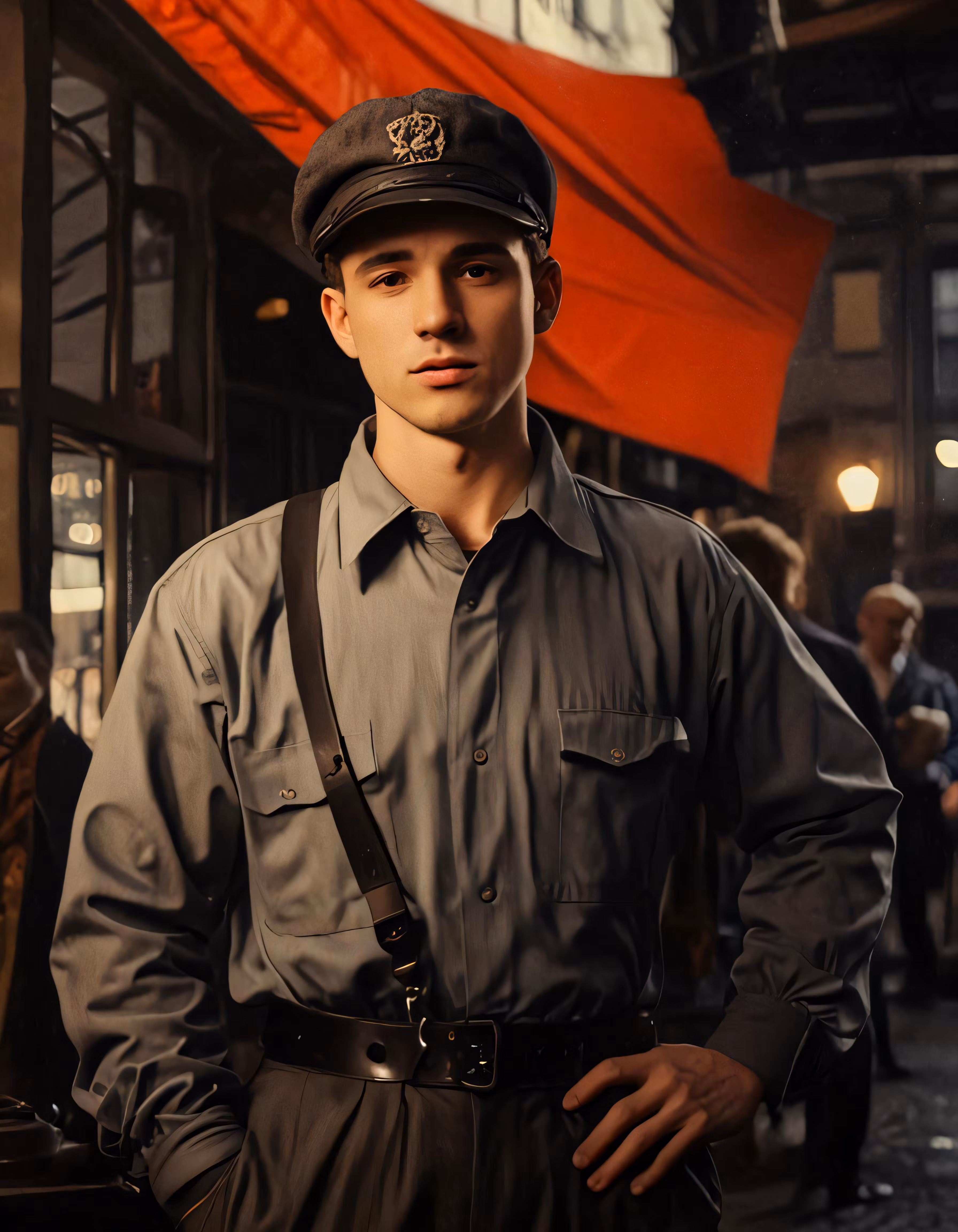 High resolution picture, free to use, a man wearing a black hat standing in a street