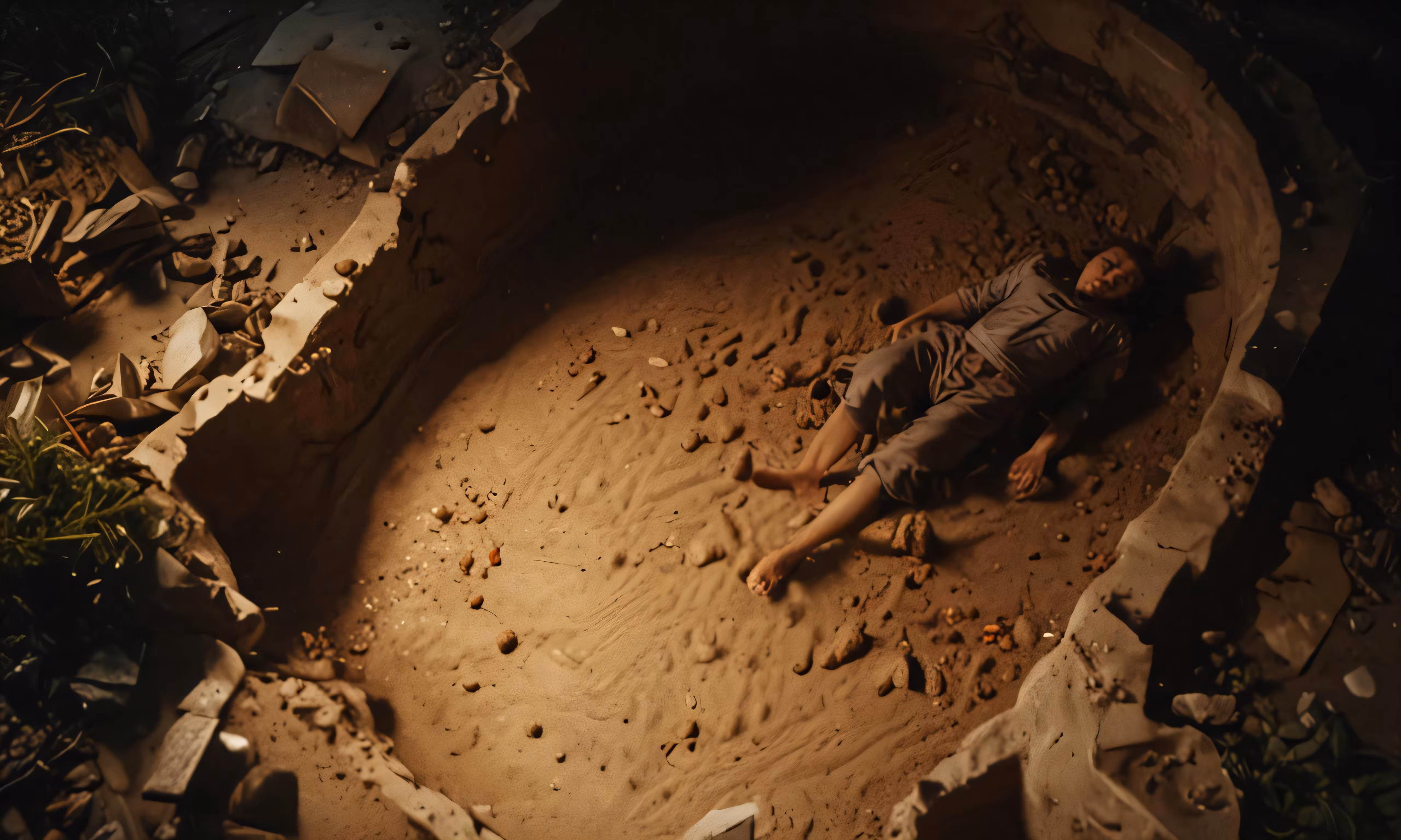 High resolution picture, free to use, a man who is laying down inside of a hole