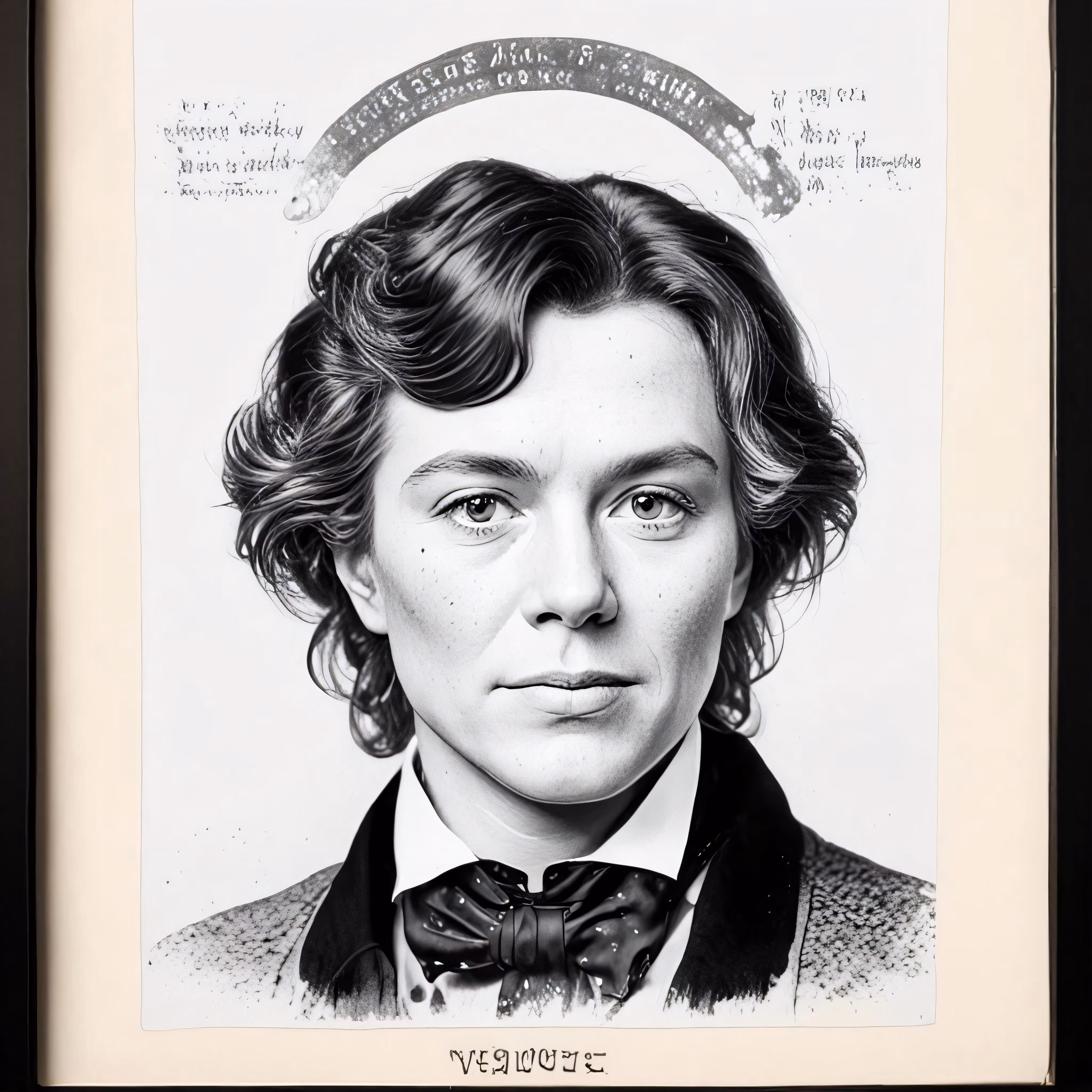 High resolution picture, free to use, a man with a bow tie in front of a portrait