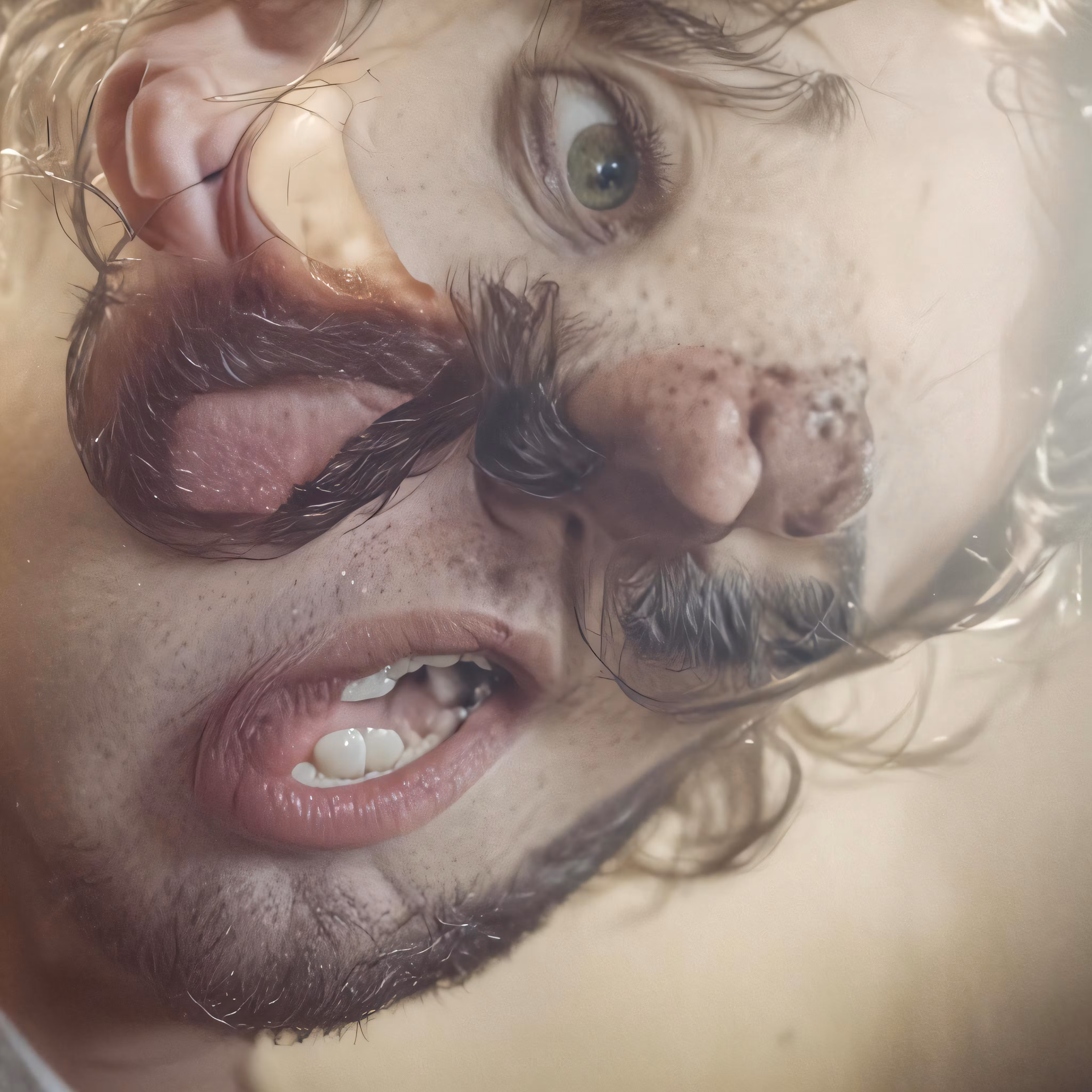 High resolution picture, free to use, a man with a mustache and hair is looking into the mirror