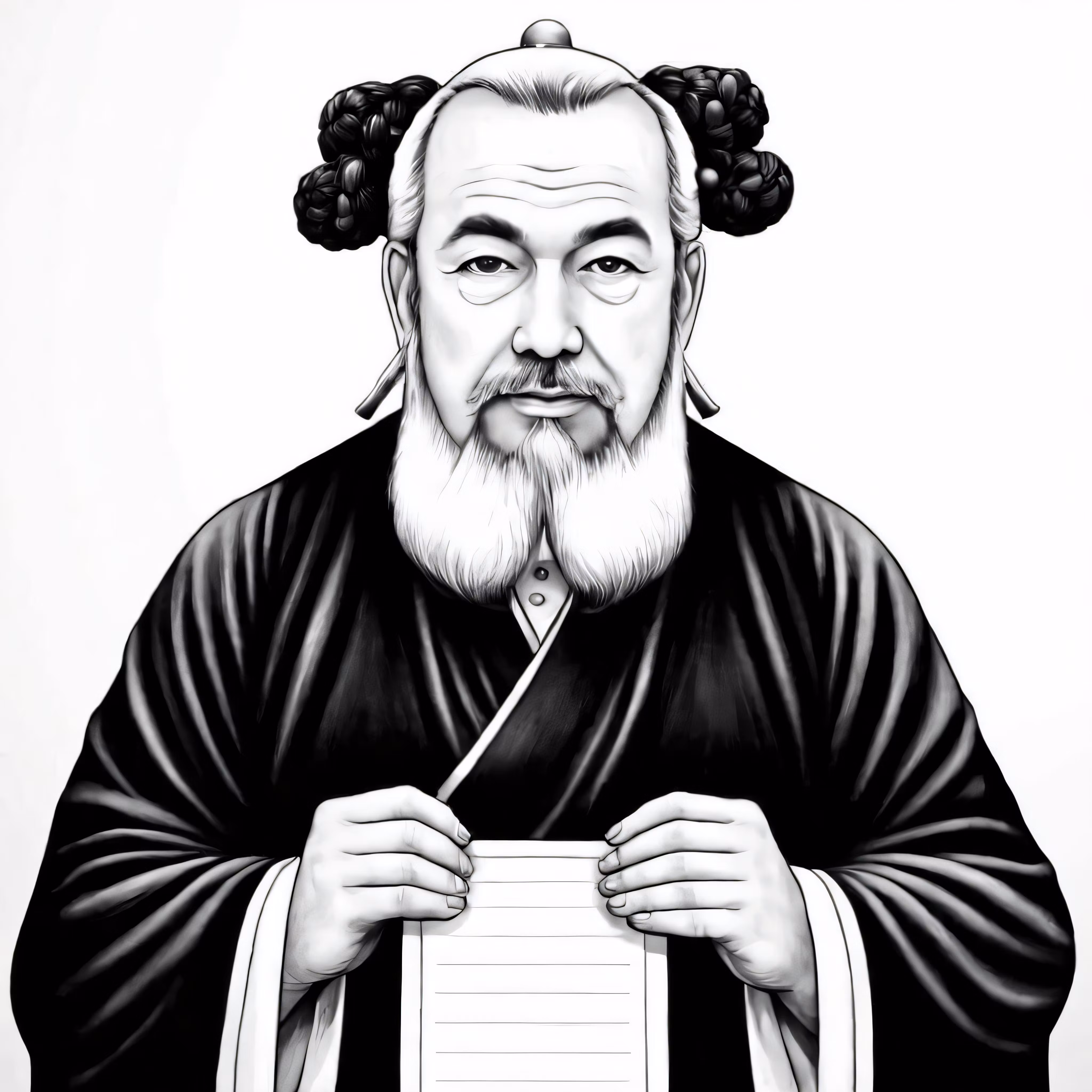High resolution picture, free to use, a man with an oriental outfit holding a note pad