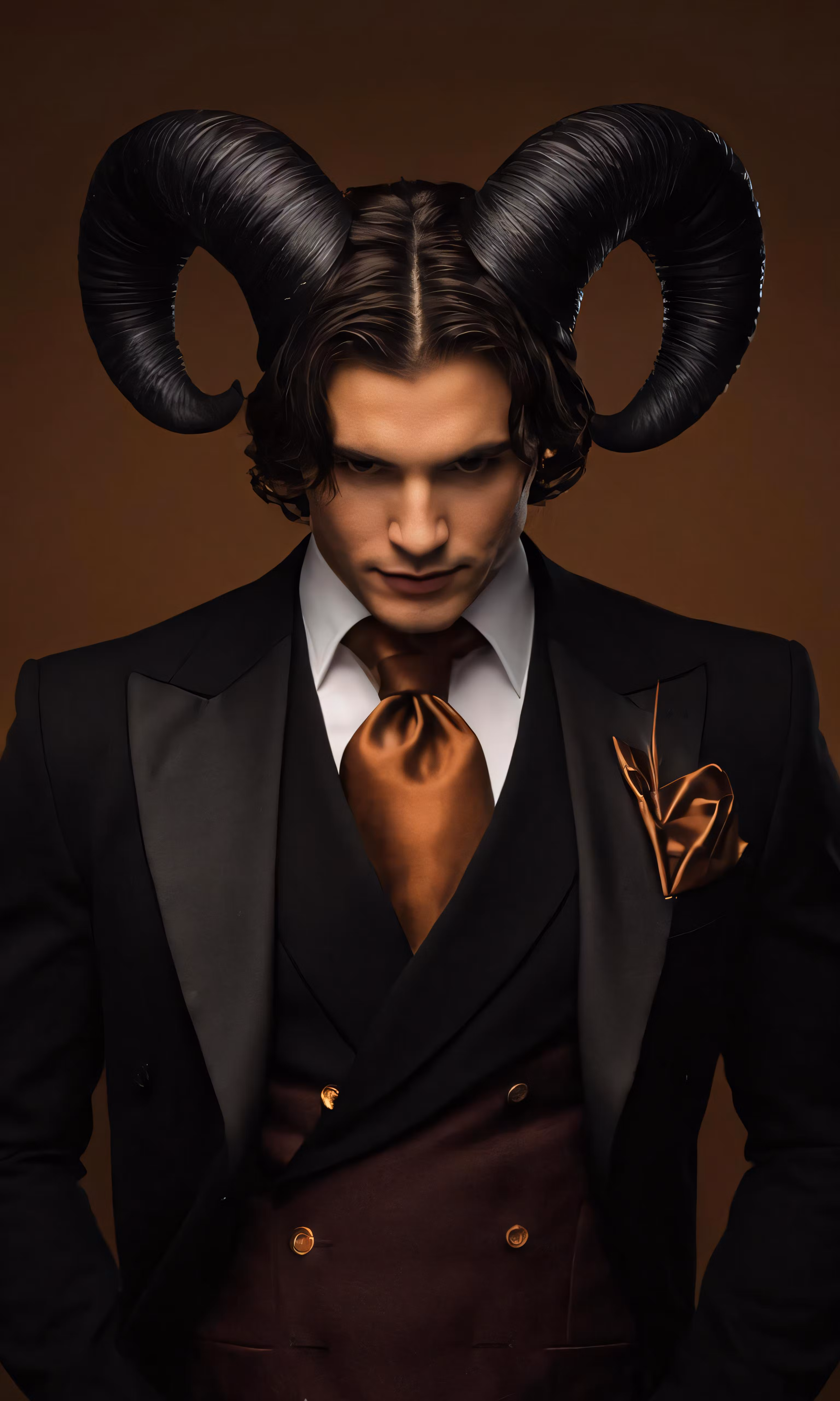 High resolution picture, free to use, a man with horned horns wearing a suit