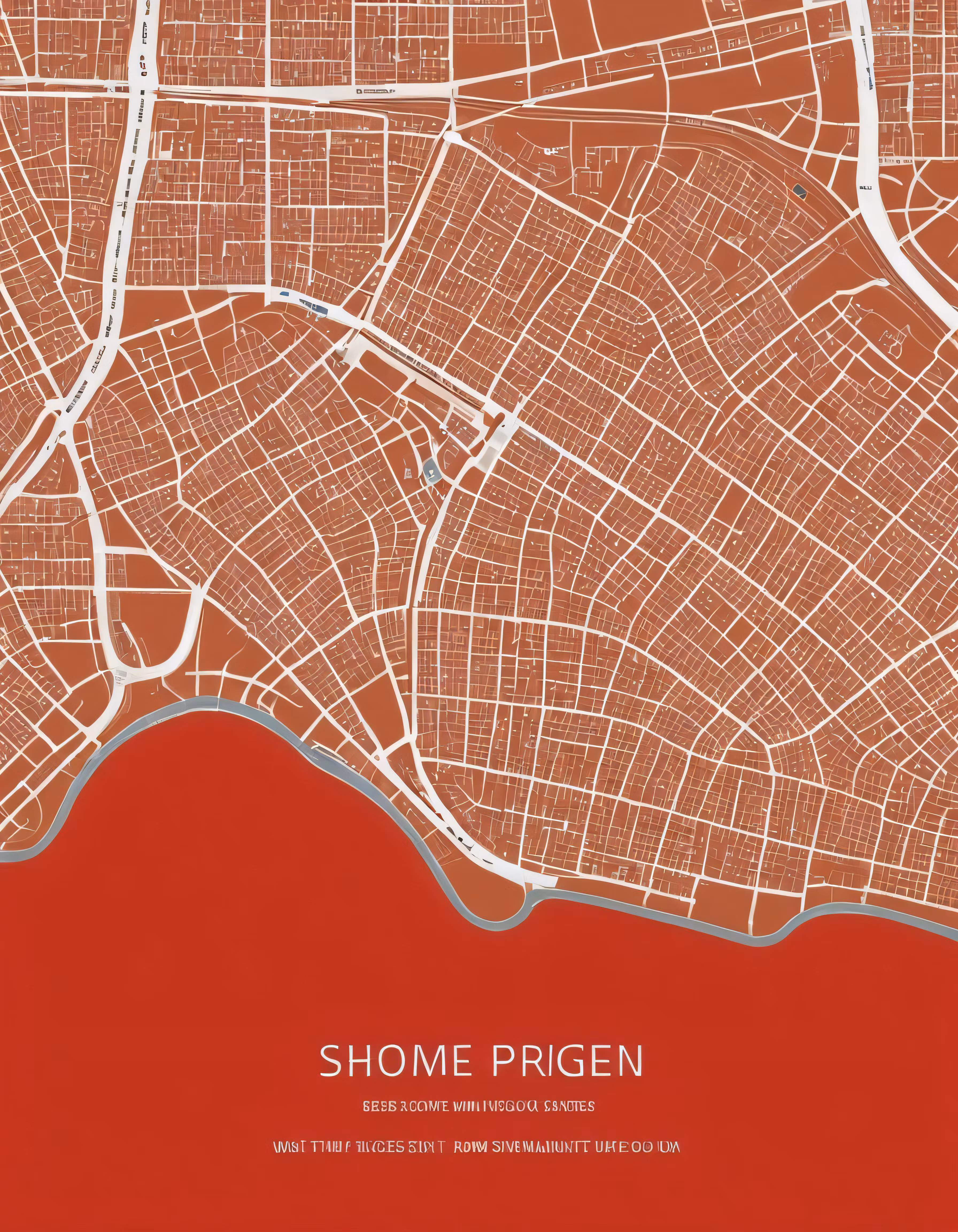 High resolution picture, free to use, a map of the town of a city with red lines