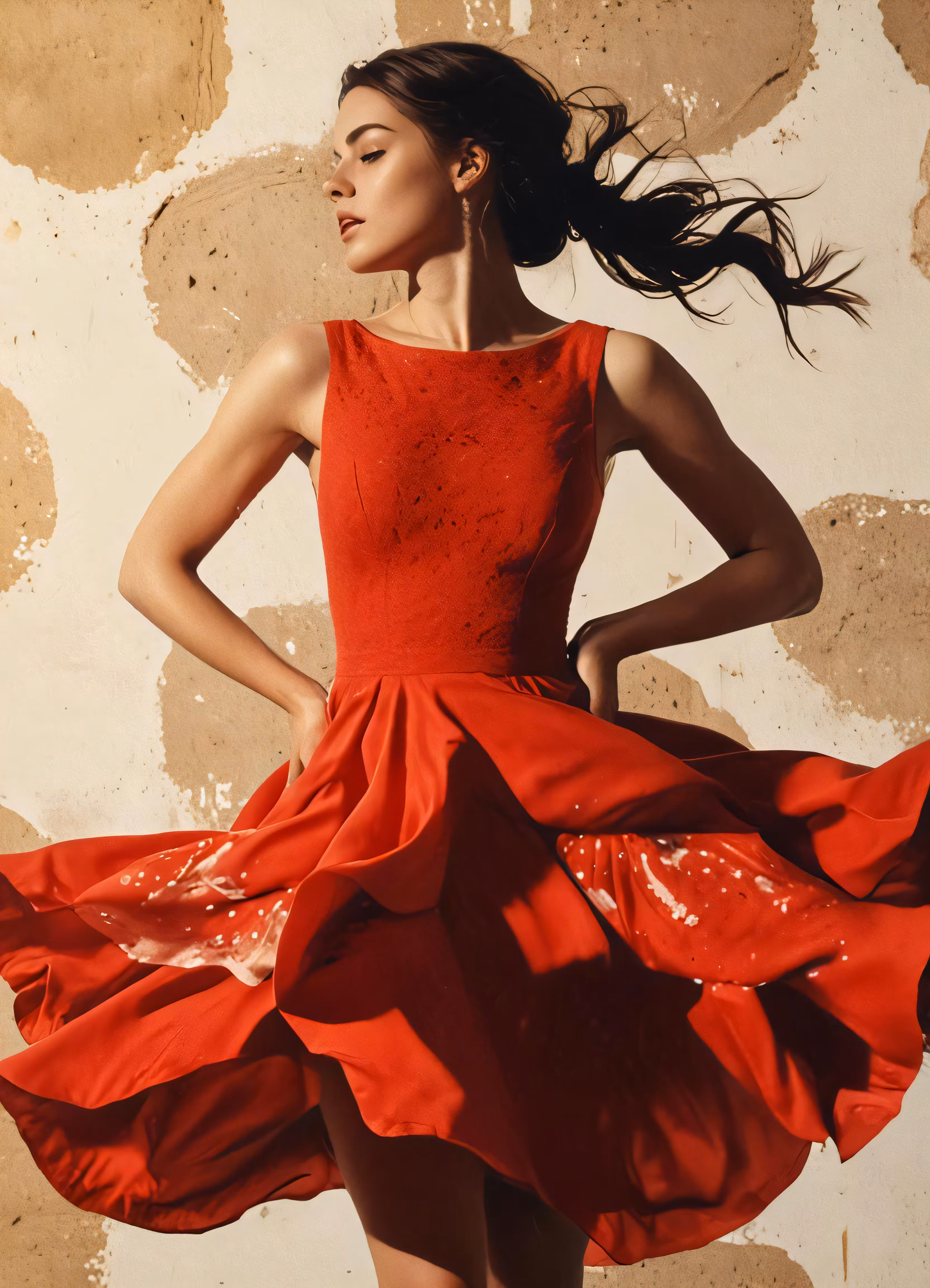 High resolution picture, free to use, a model in a red dress and heels posing for a photograph