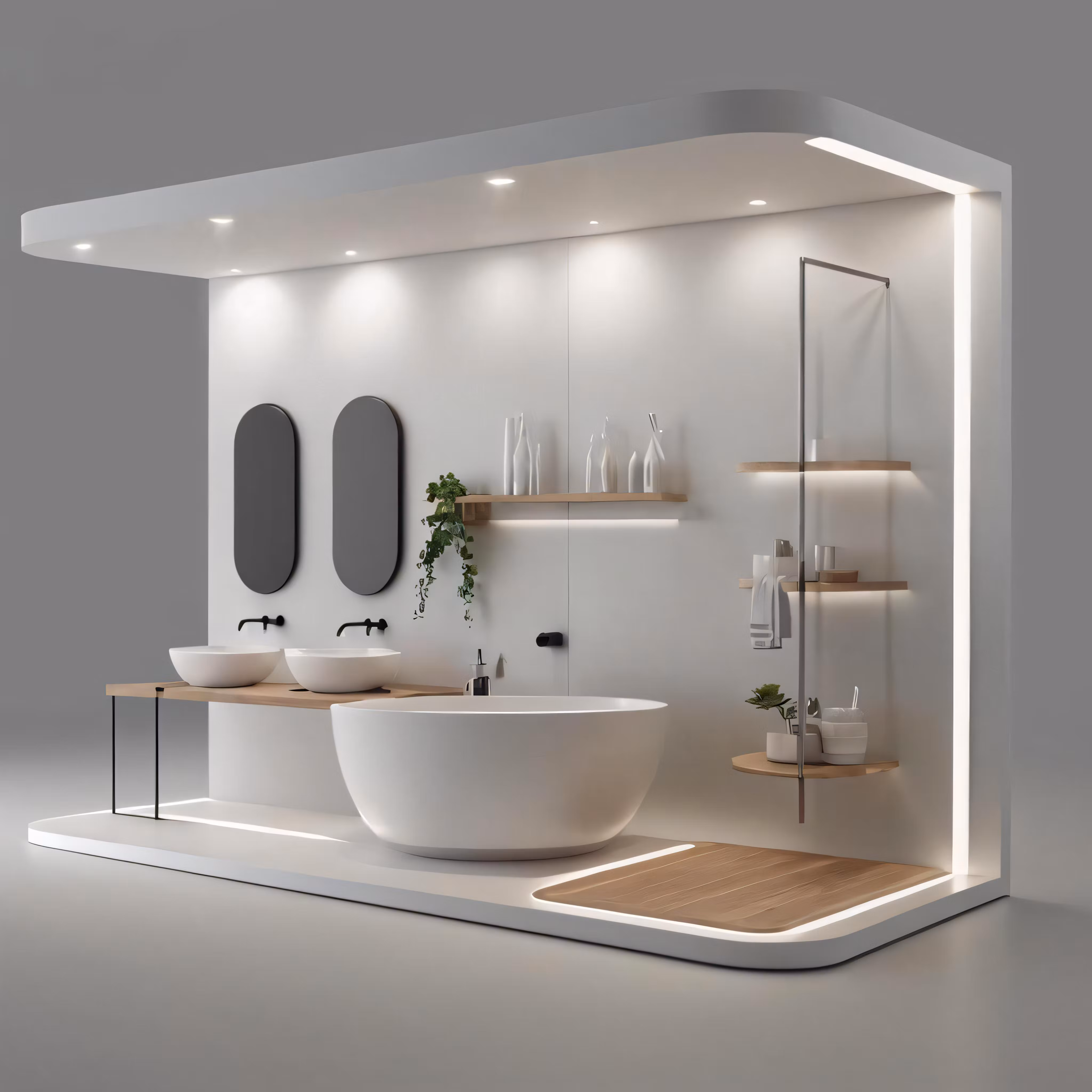 High resolution picture, free to use, a modern white bathroom is decorated in minimalist design