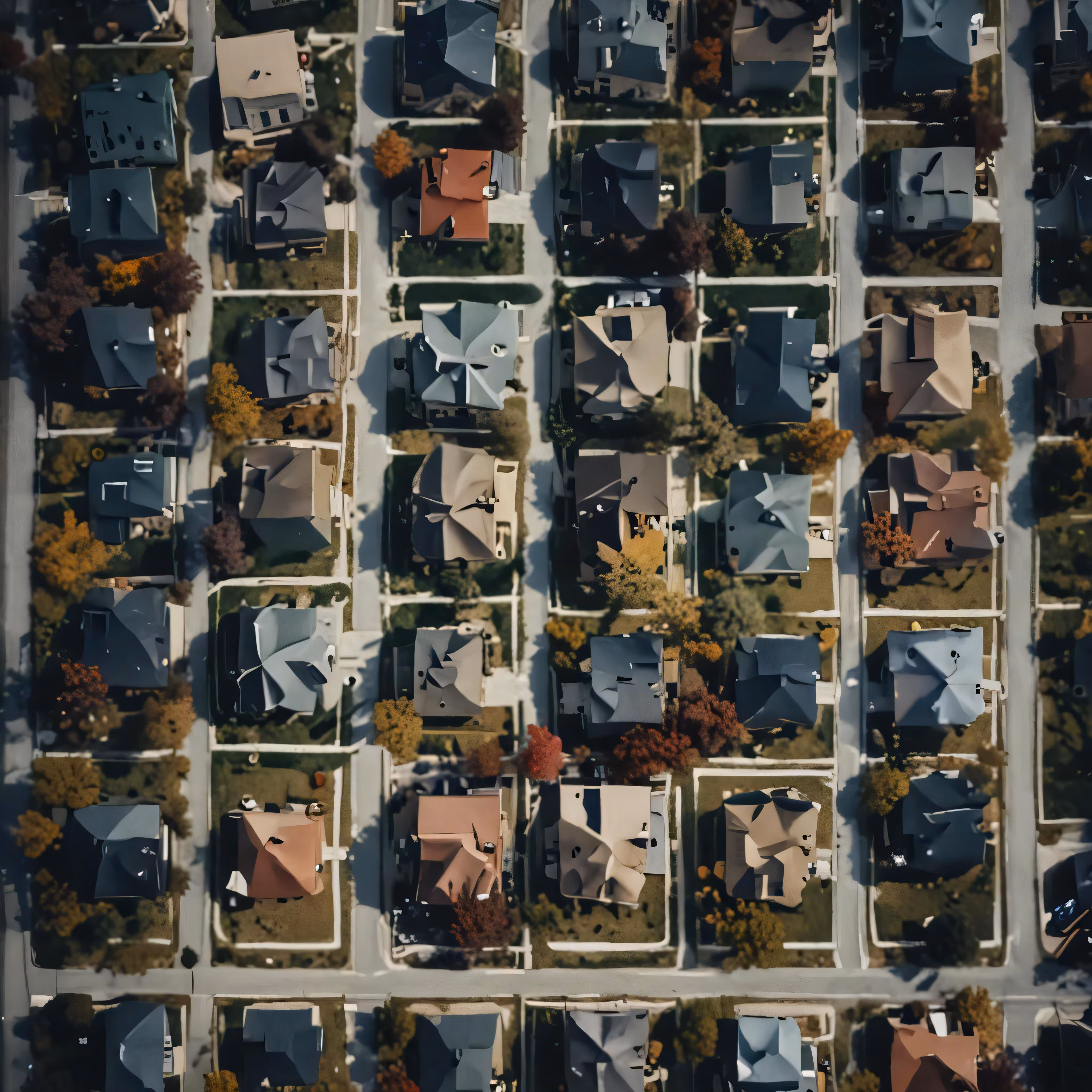 High resolution picture, free to use, a neighborhood filled with lots of houses covered in trees