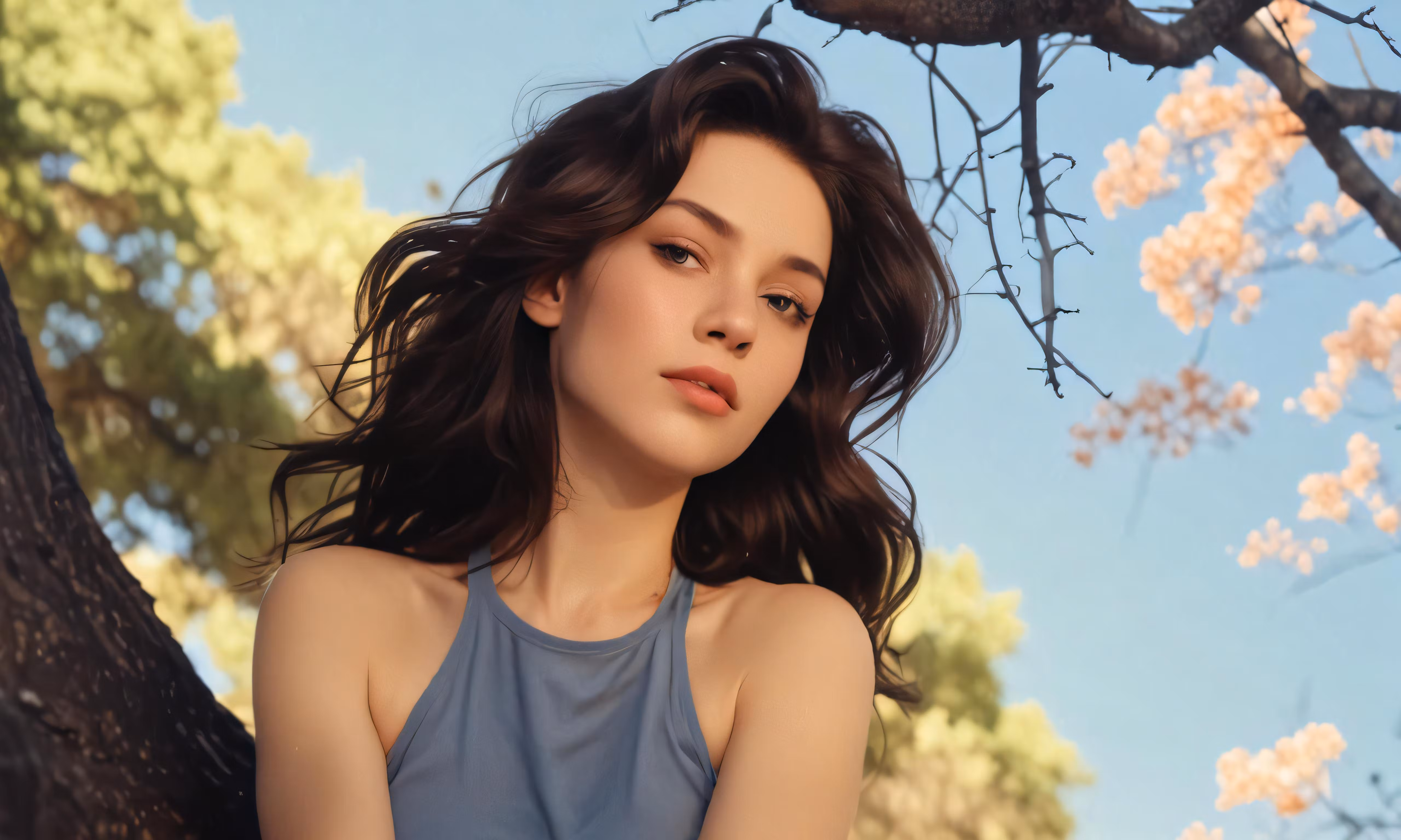 High resolution picture, free to use, a painting of a girl wearing a gray top