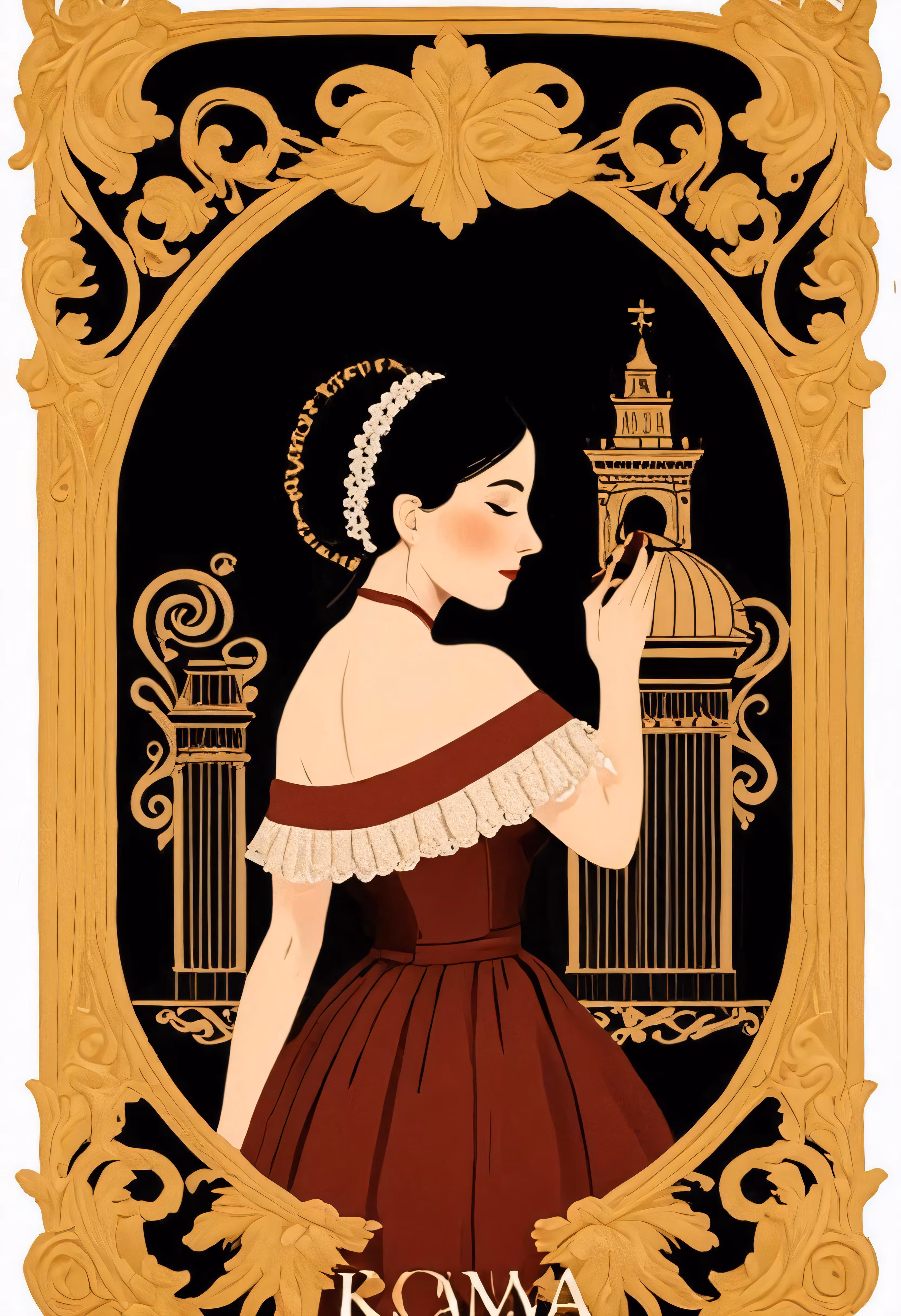 High resolution picture, free to use, a painting of a lady in red and gold holding a wine glass