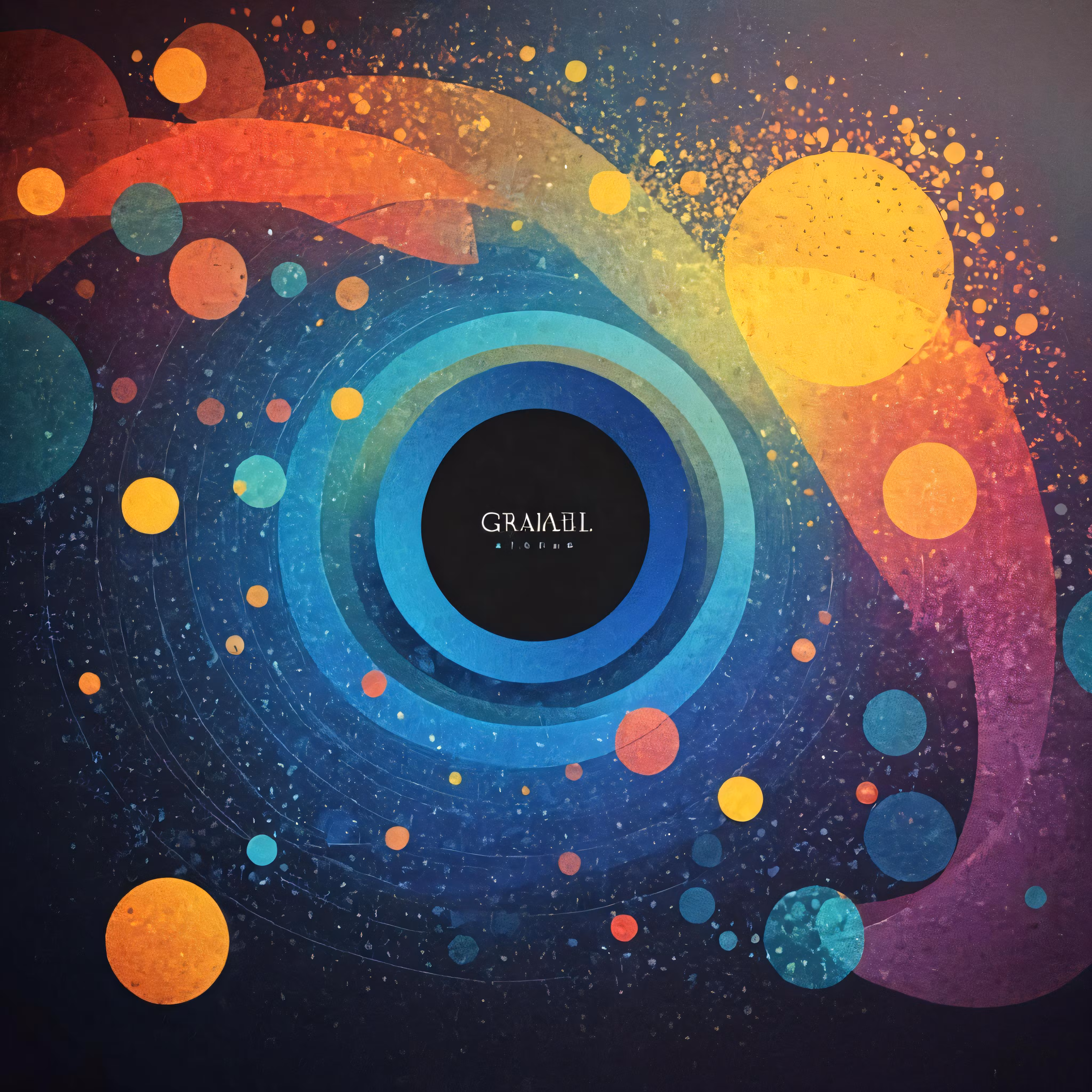 High resolution picture, free to use, a painting with a black hole and some colored dots on it